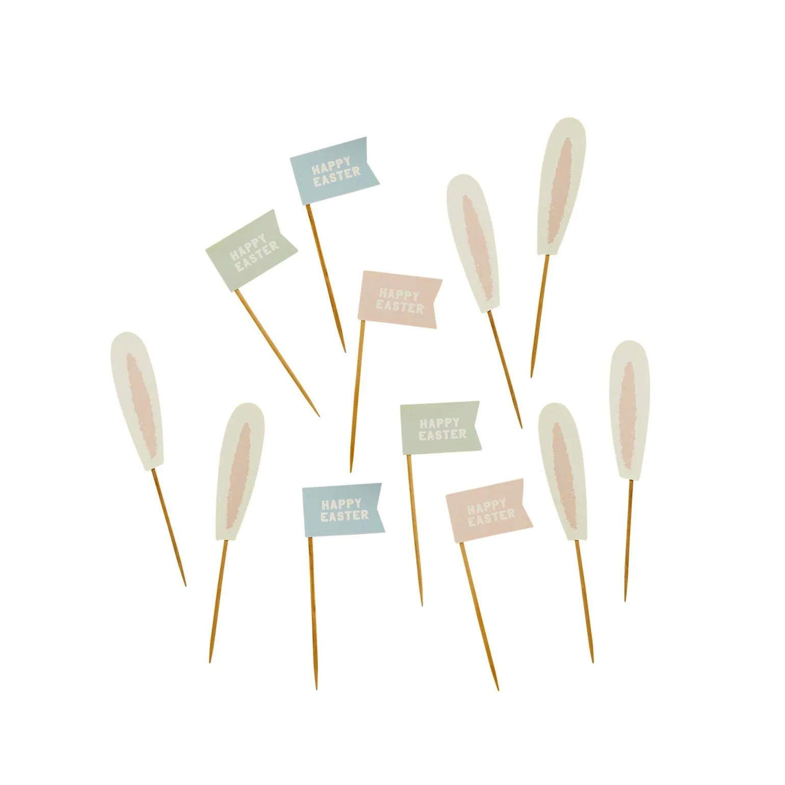Bunny Ears & Happy Easter Flag Food Picks – Pack of 12