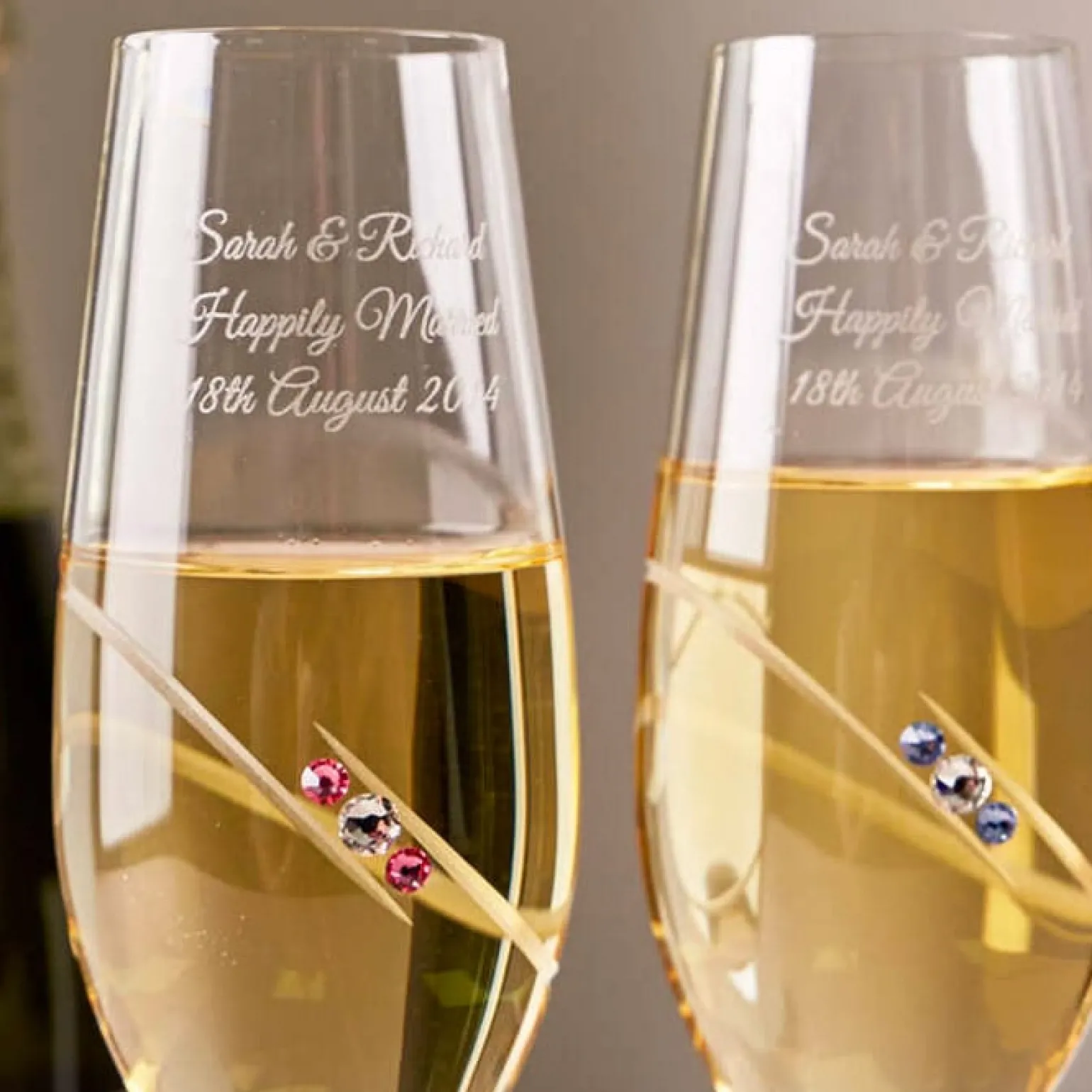 Be the first to review “Engraved Pink & Blue Swarovski Crystal Champagne Flute Pair” Cancel reply