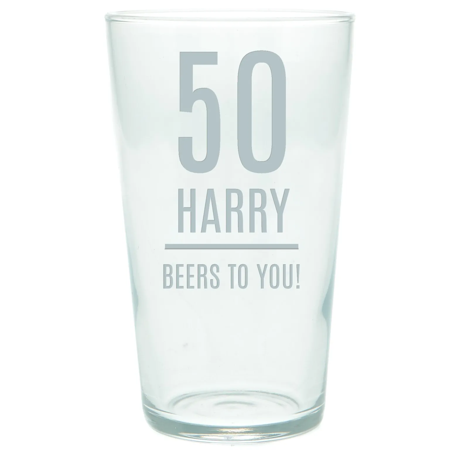 Personalised 50th Birthday Pint Glass – Editable Age, Name & Message