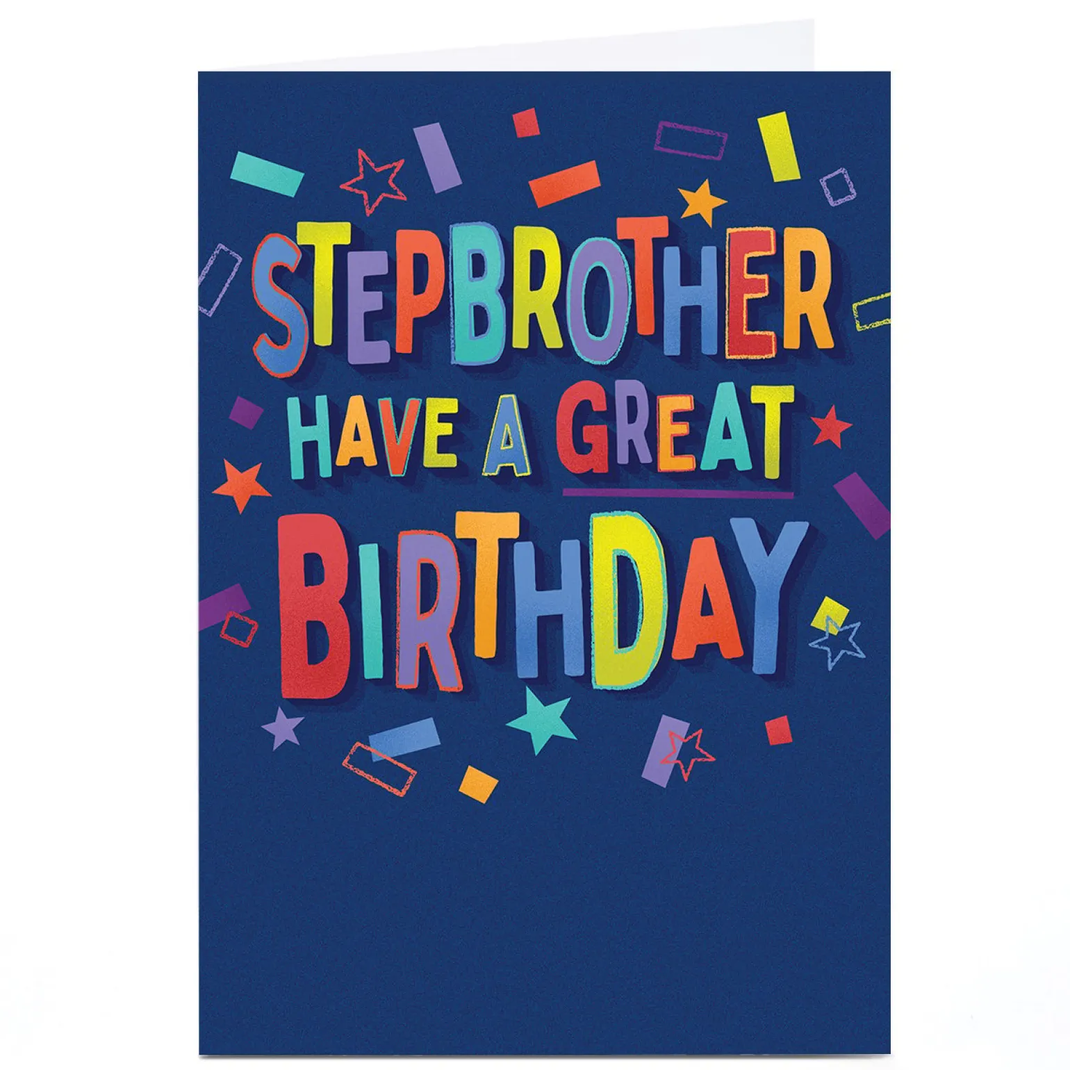 Personalised Birthday Card – Bold and Bright Letters, Stepbrother