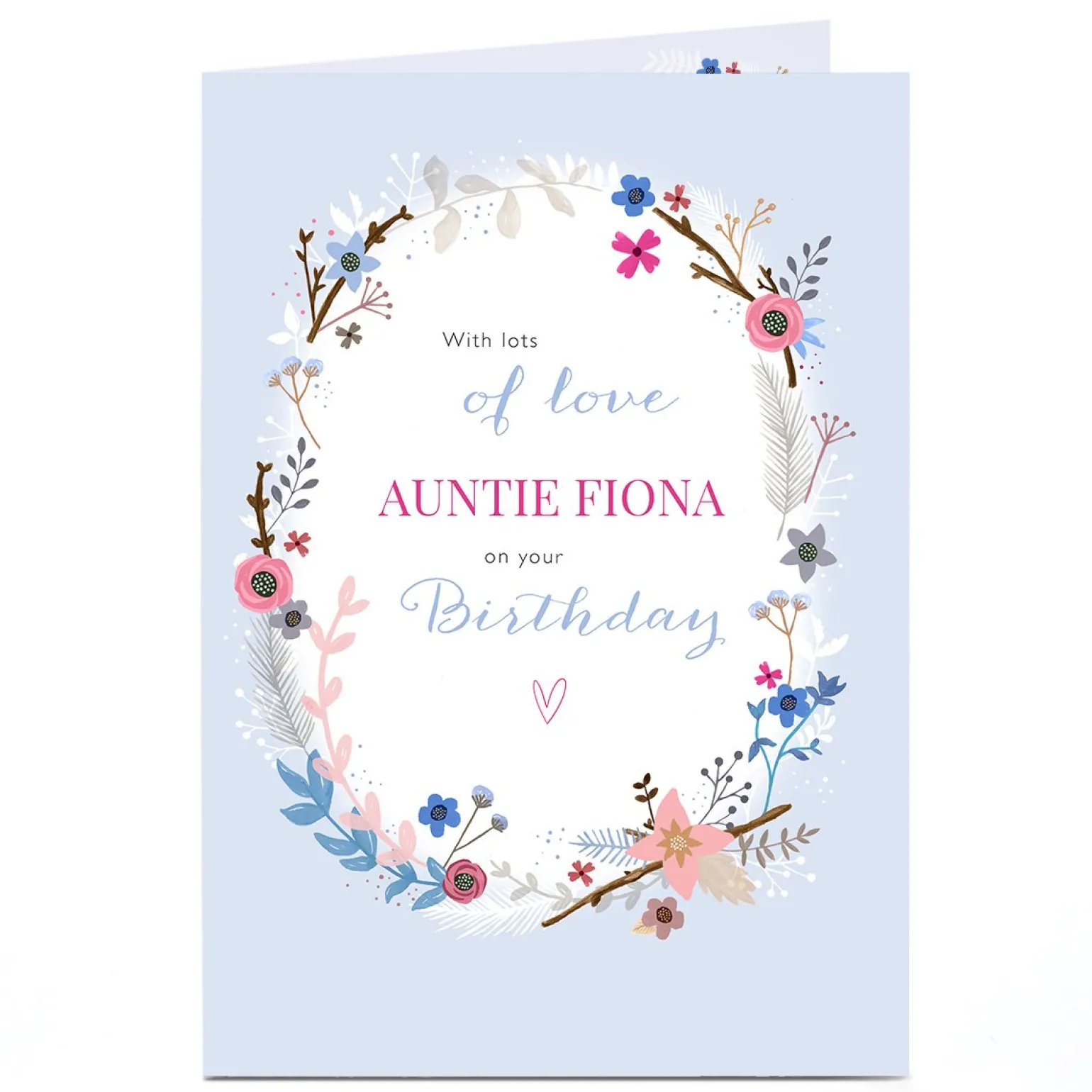 Personalised Birthday Card – Flowers Oval Boarder Auntie