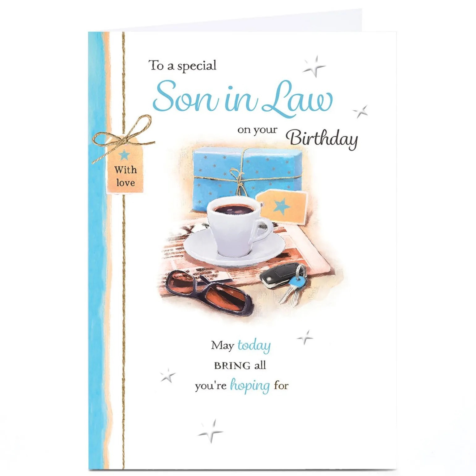 Personalised Birthday Card – Morning Coffee and Present, Son-in-Law