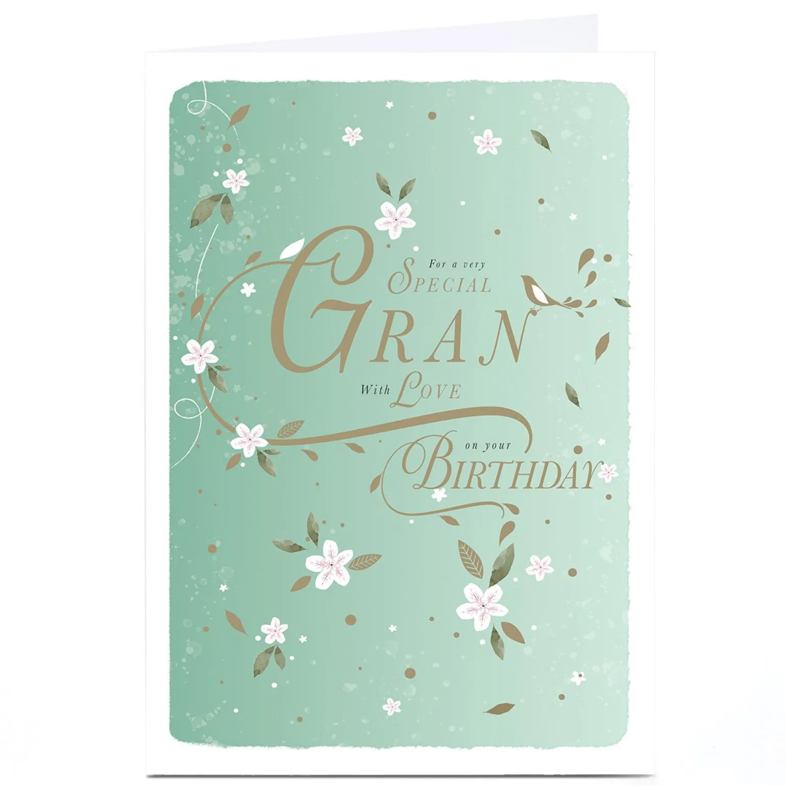 Personalised Birthday Card – Pastel Green Flower Blossom, Gran