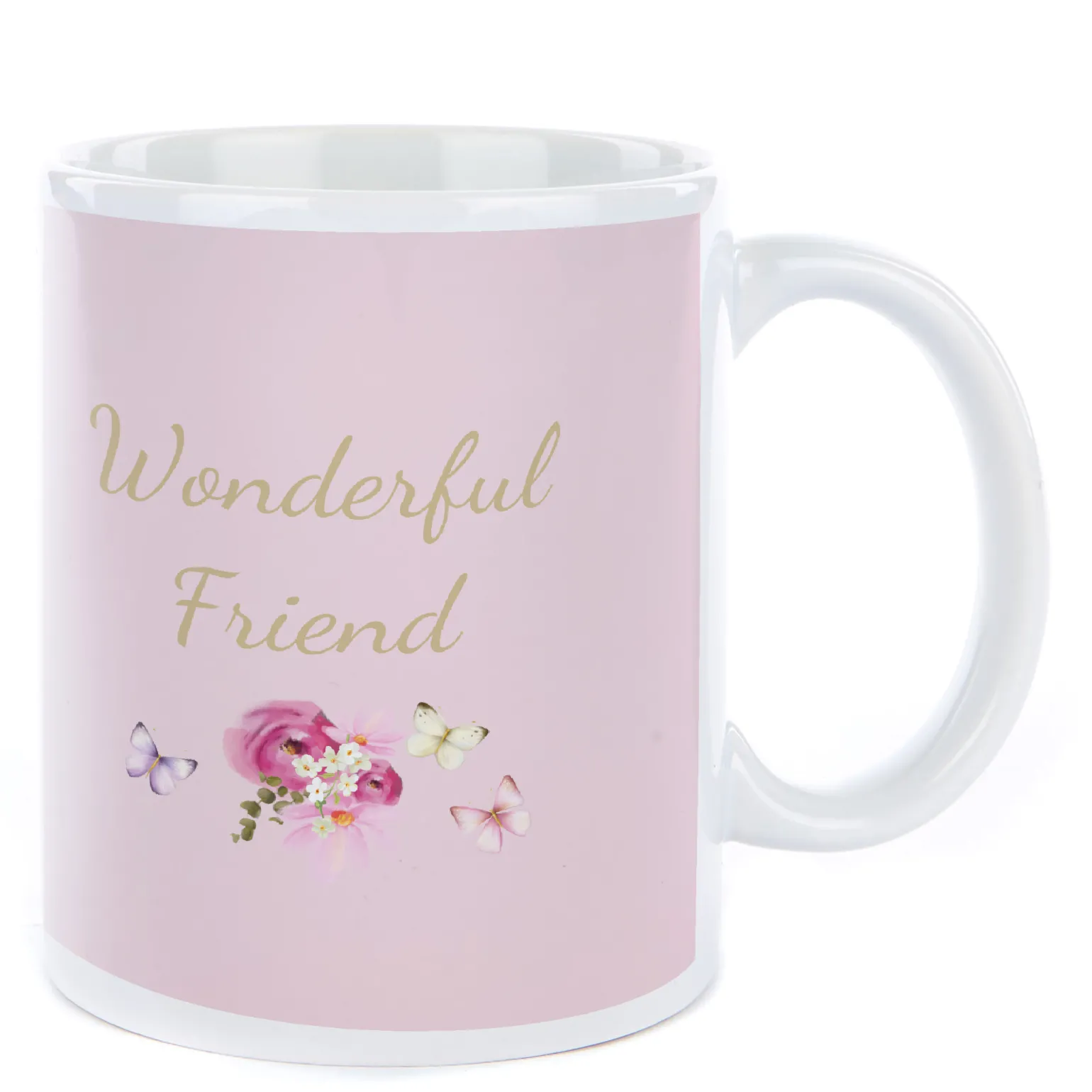 Personalised Birthday Mug – Pink Flowers, Editable Age & Recipient