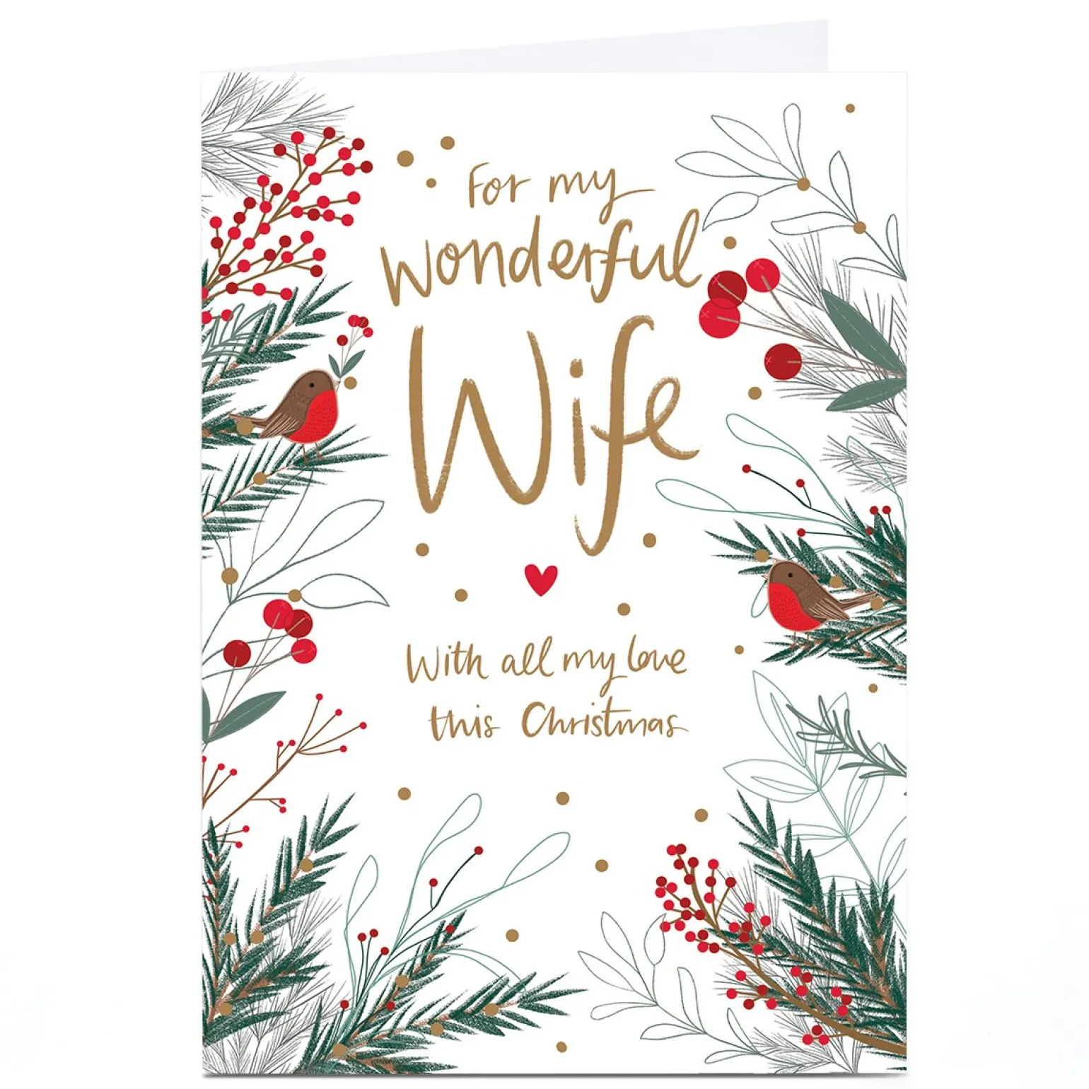 Personalised Christmas Card – Robins on Branches, Wife