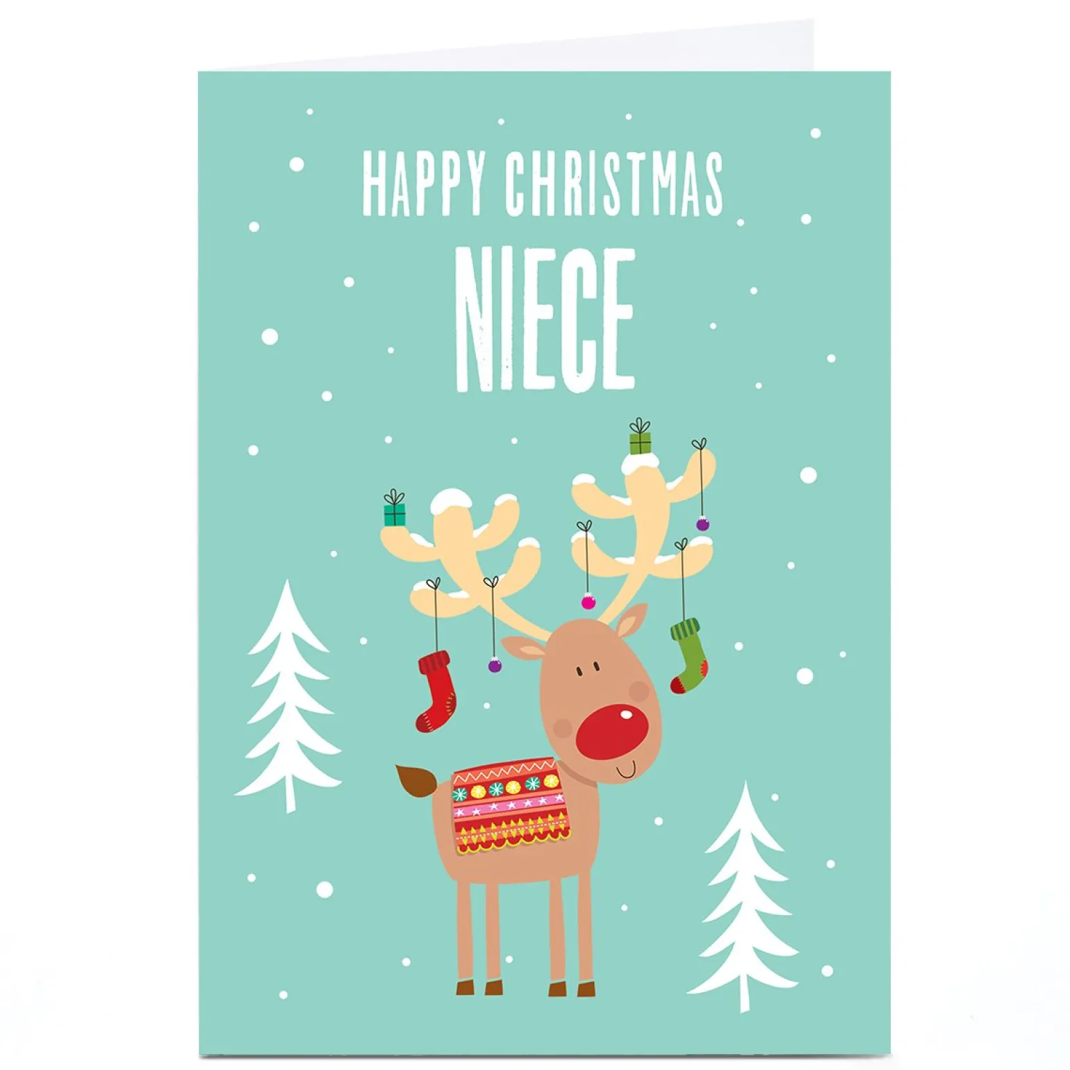Be the first to review “Personalised Christmas Card – Rudolph With Stockings on Antlers, Niece” Cancel reply
