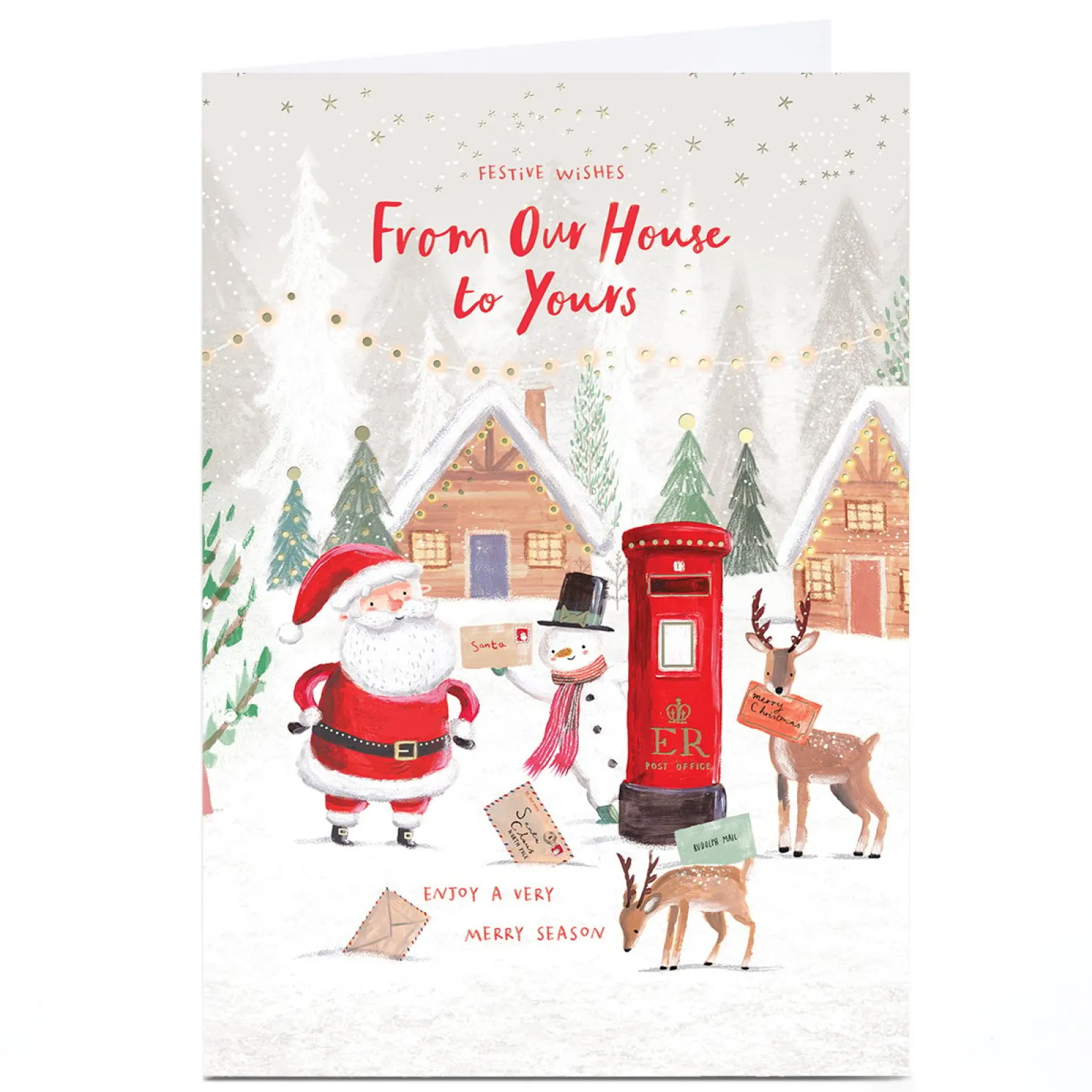 Personalised Christmas Card – Santa and Friends Postbox, From Our House to Yours