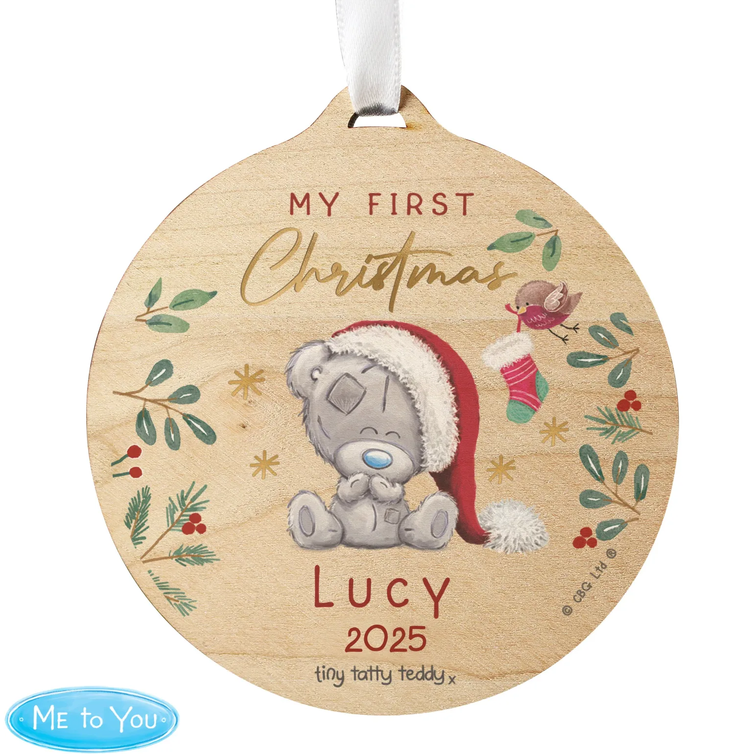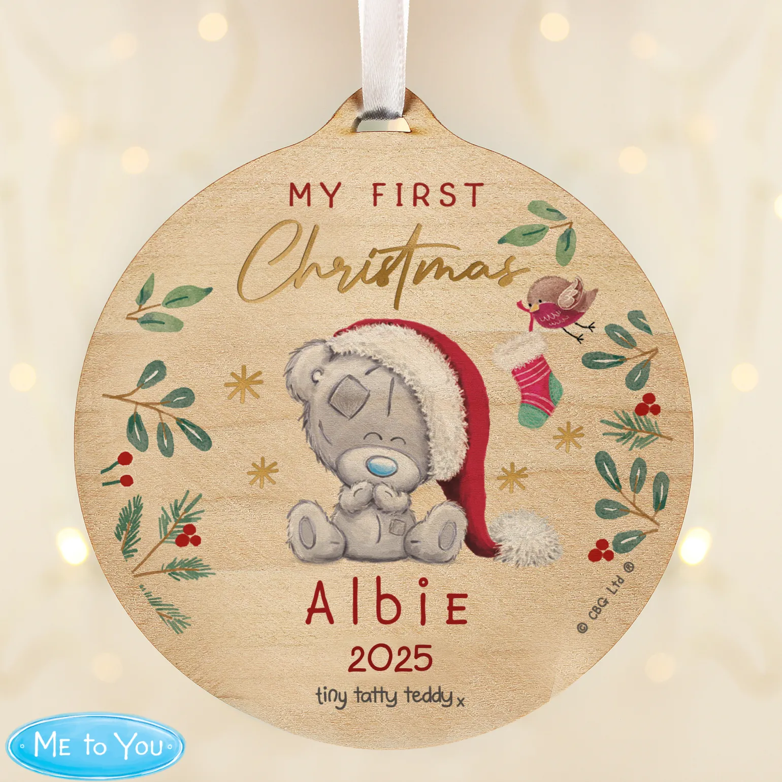 Personalised First Christmas Tiny Tatty Teddy Wooden Decoration