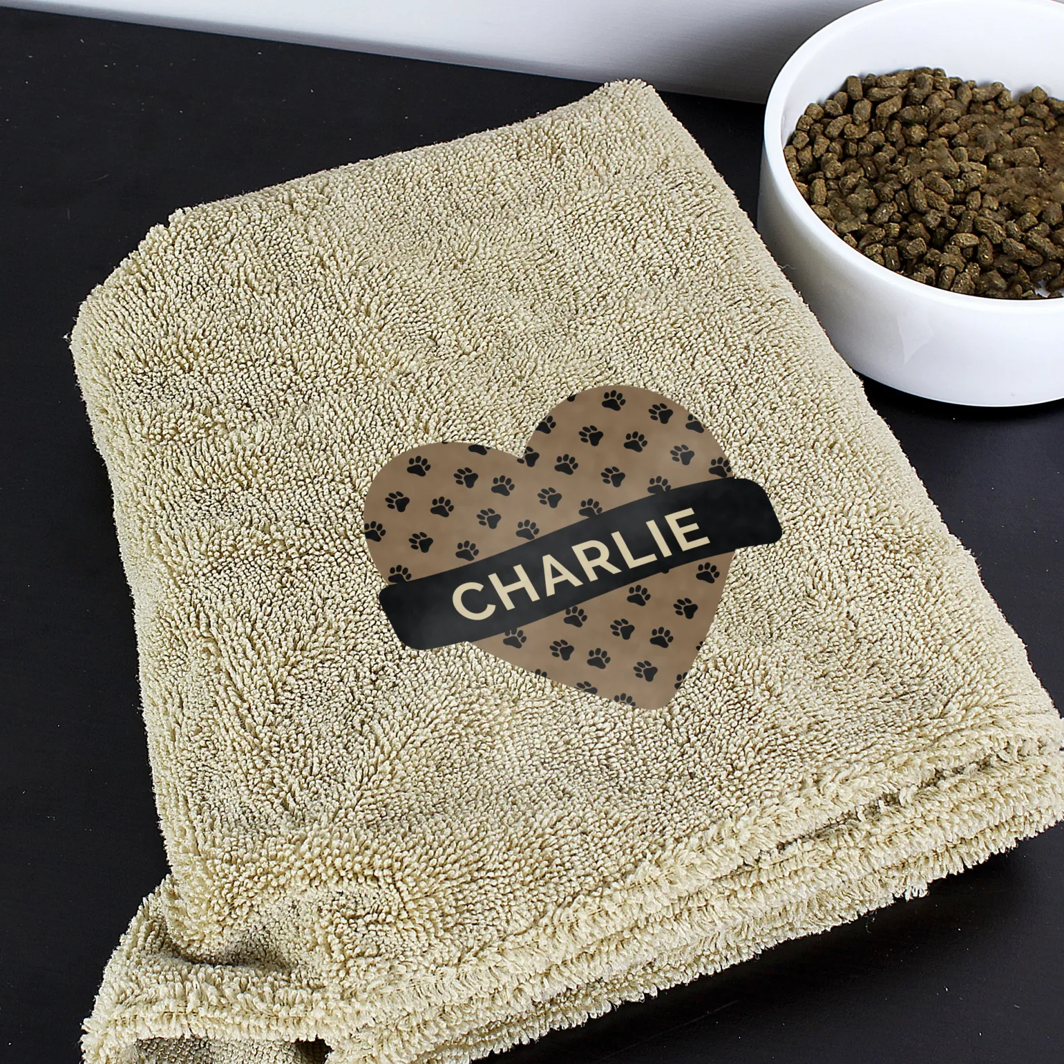 Personalised Heart Brown Microfibre Pet Towel