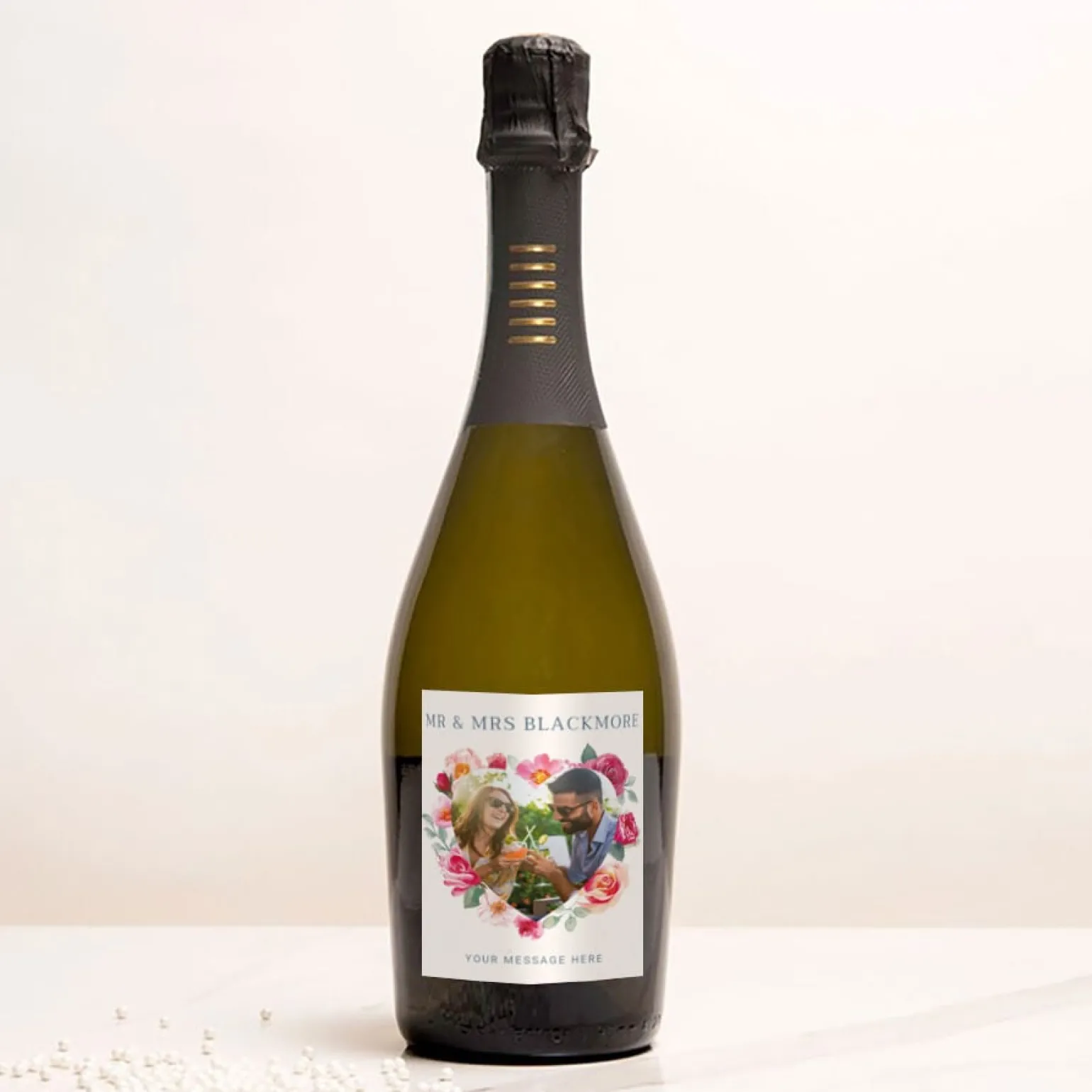 Personalised Prosecco – Floral Heart Photo
