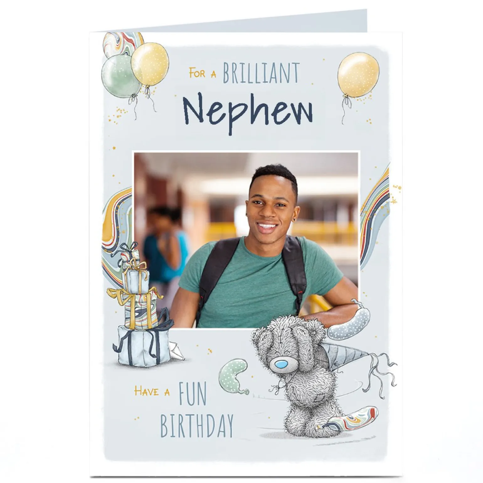 Photo Tatty Teddy Birthday Card – Bear with Flying Balloons