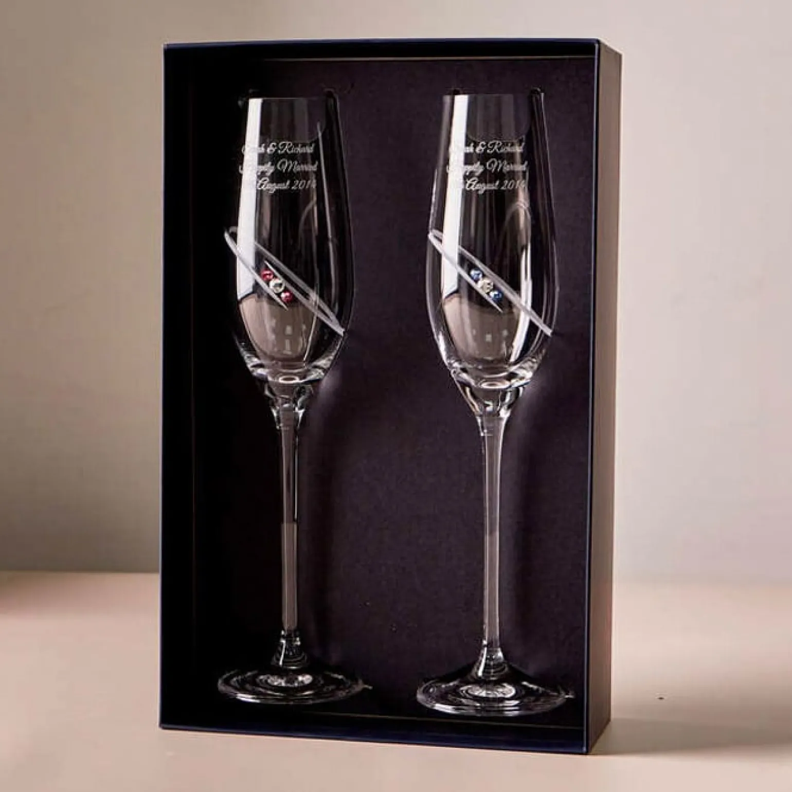 Be the first to review “Engraved Pink & Blue Swarovski Crystal Champagne Flute Pair” Cancel reply