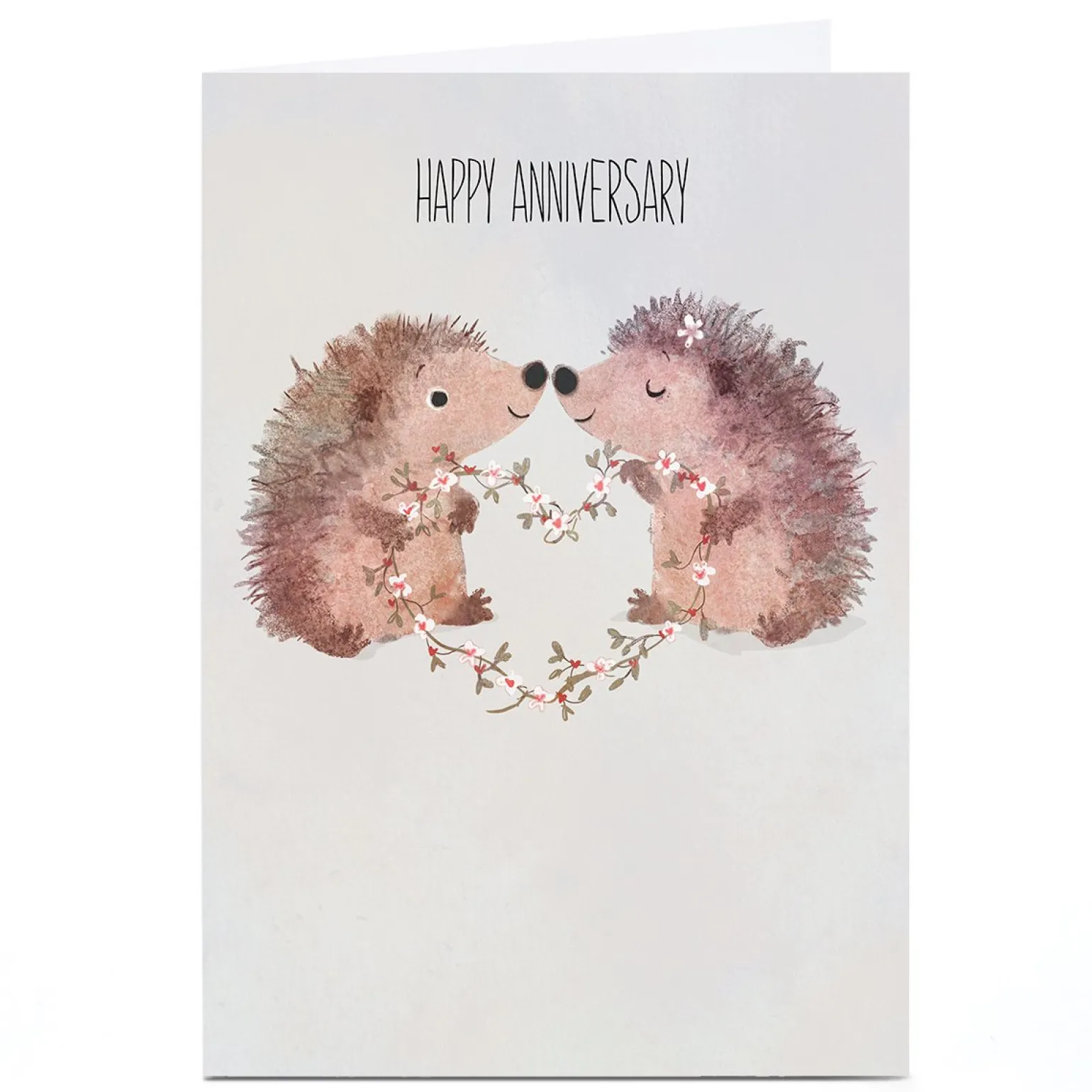 Personalised Anniversary Card – Hedgehogs with Flower Heart