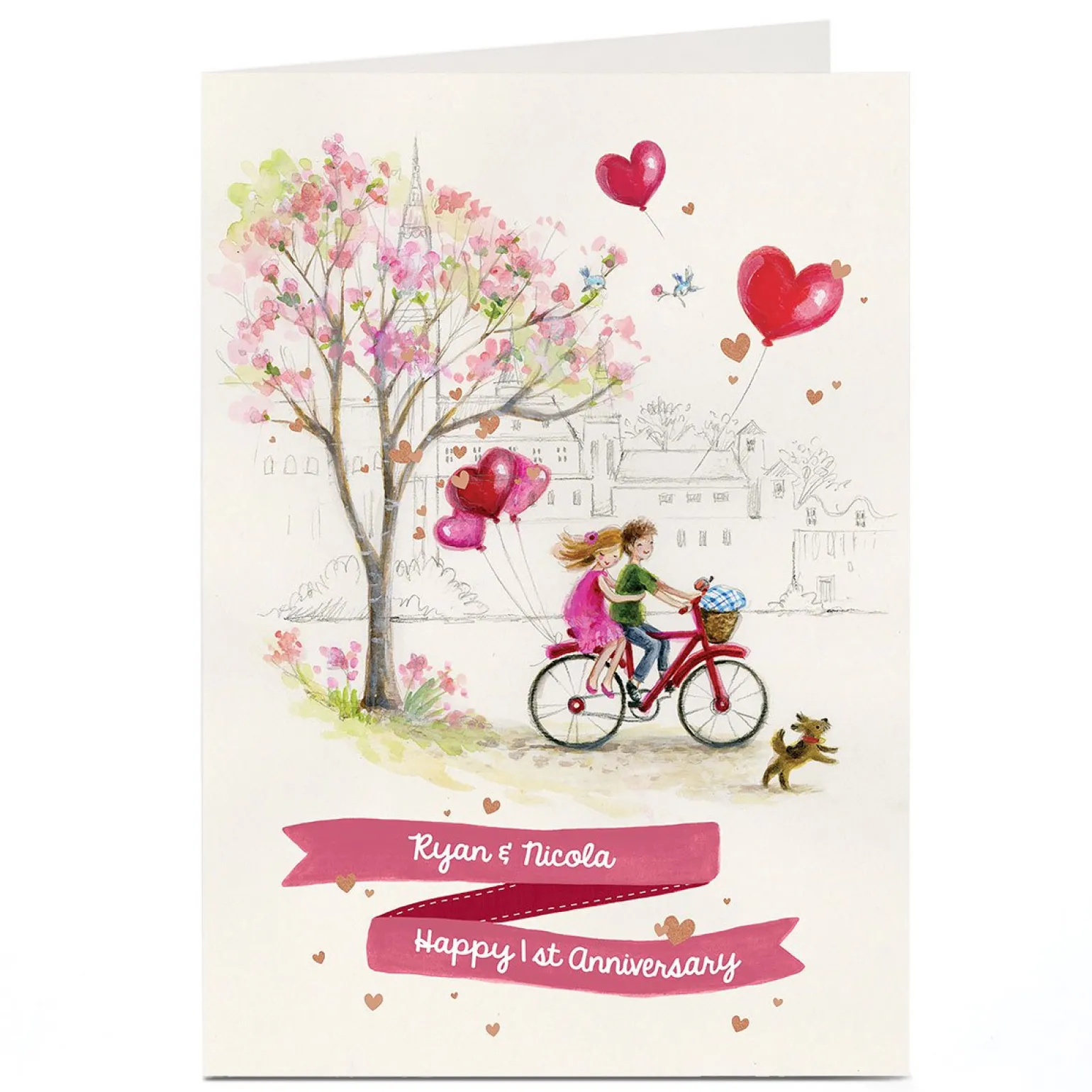 Personalised Any Message Card – Bicycle & Love Heart Balloons