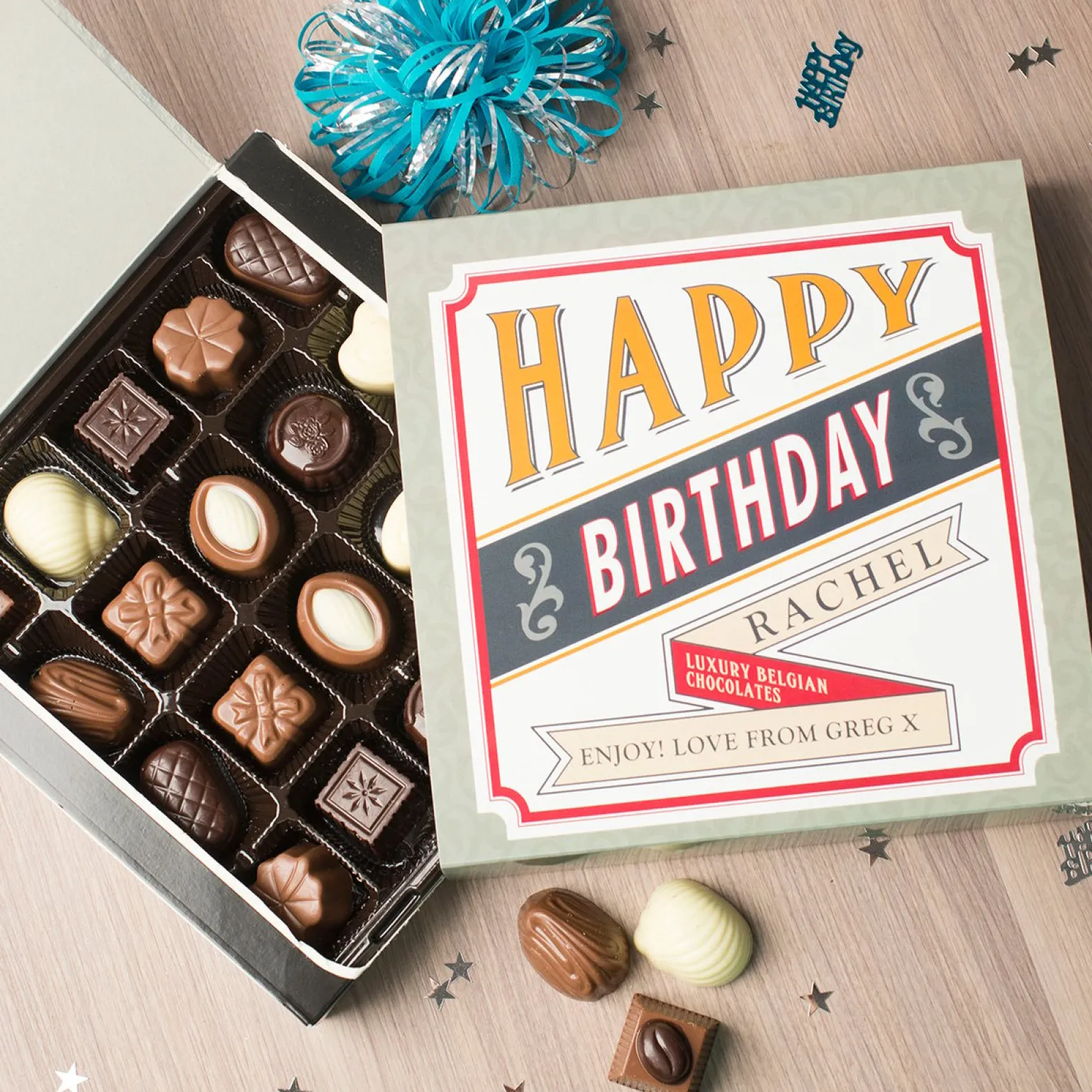 Personalised Belgian Chocolates – Retro Happy Birthday