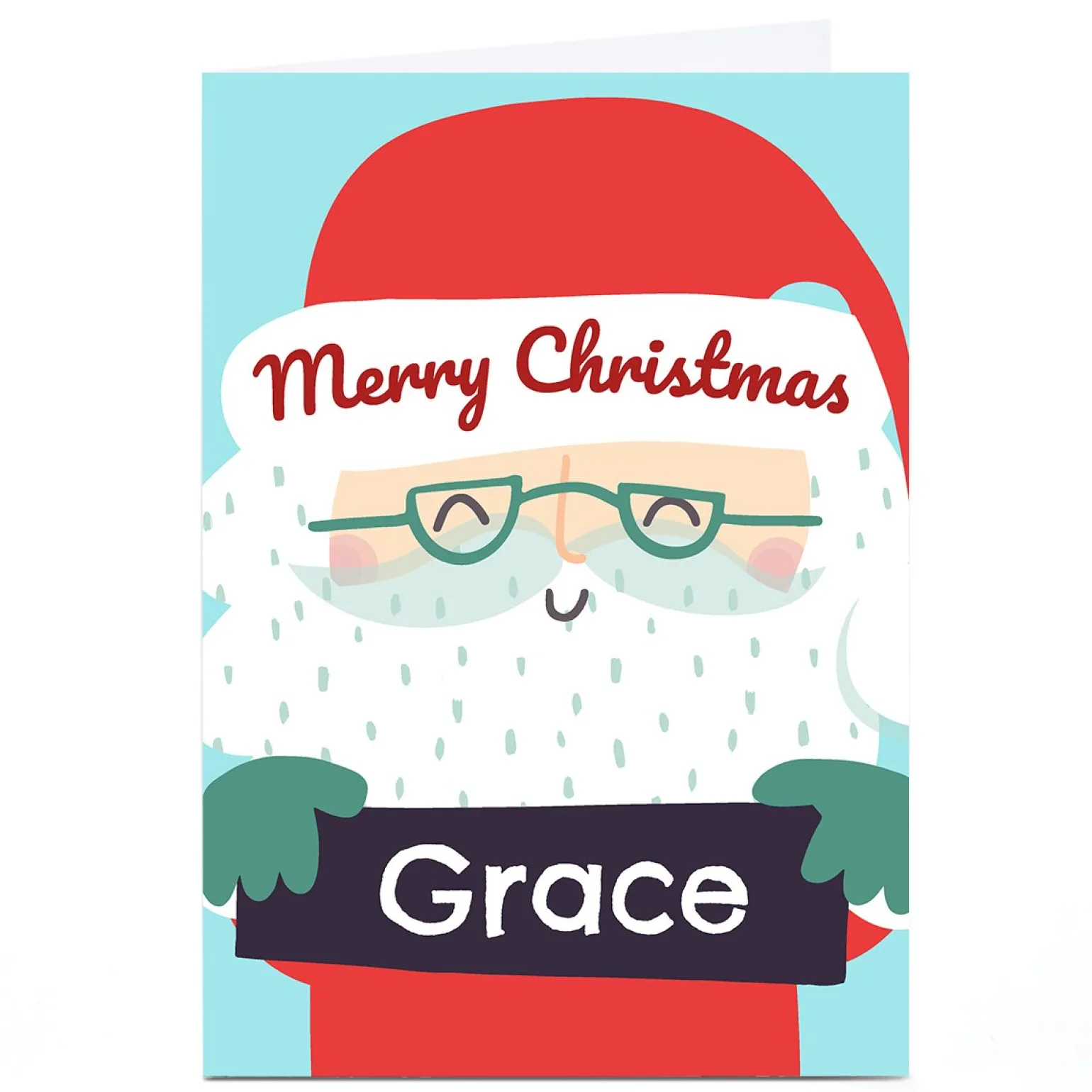 Personalised Bev Hopwood Christmas Card – Smiley Santa, Any Name