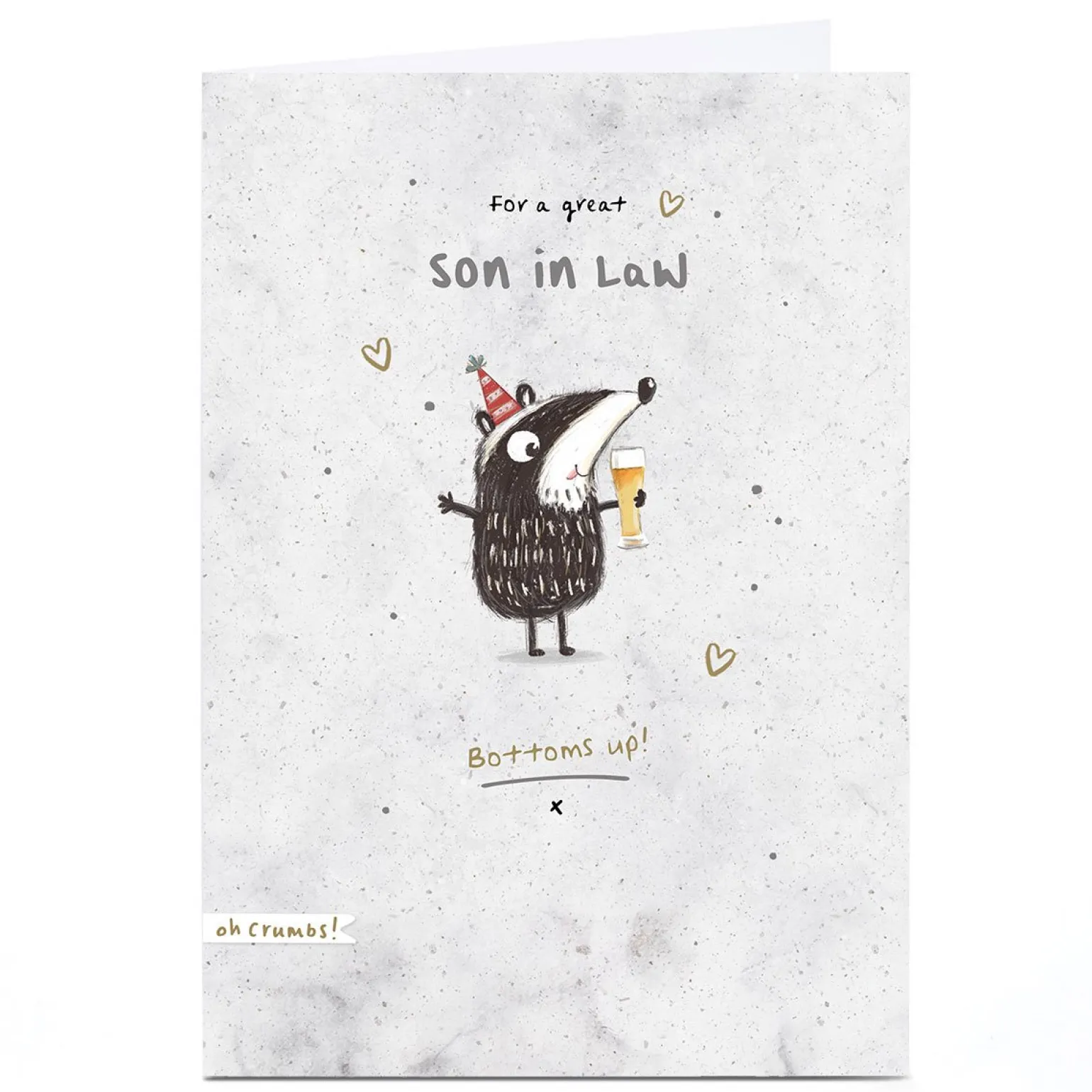 Personalised Birthday Card – Badger and Beer Bottoms Up, Son-in-Law