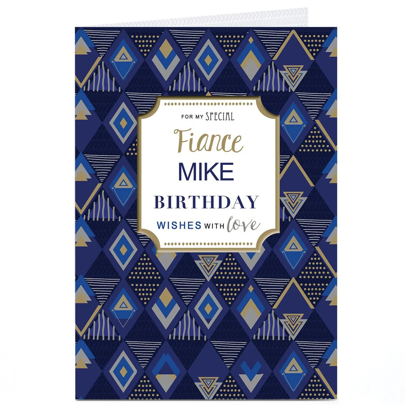 Personalised Birthday Card – Blue & Gold Pattern, Fiance