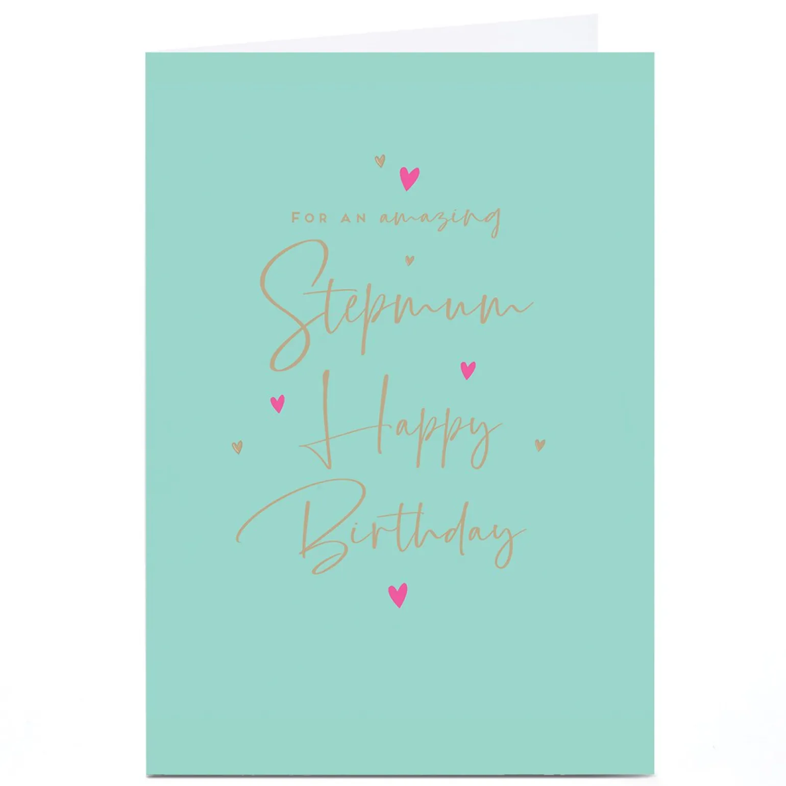 Personalised Birthday Card – Pastel Green and Gold Script, Stepmum