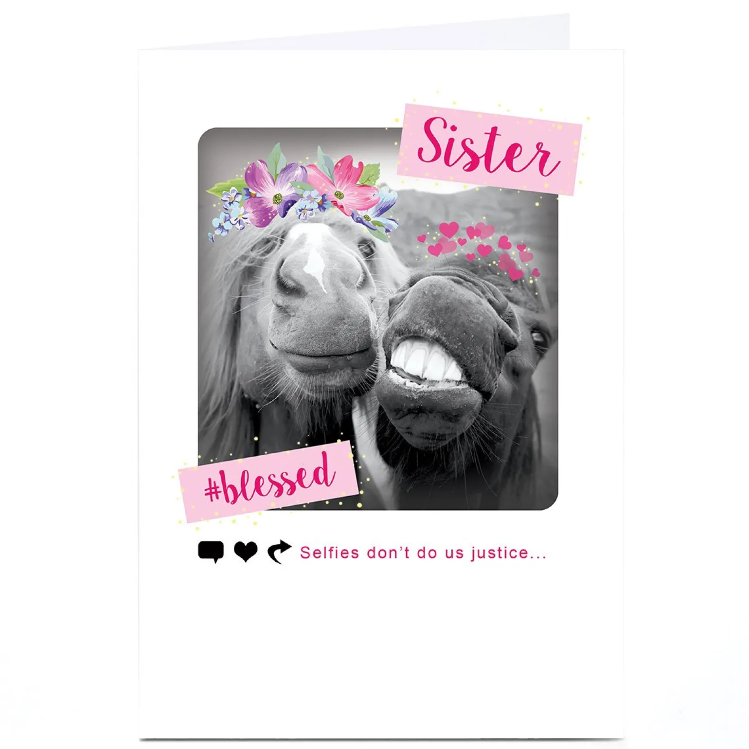 Personalised Birthday Card – Selfies Don’t Do Us Justice, Sister