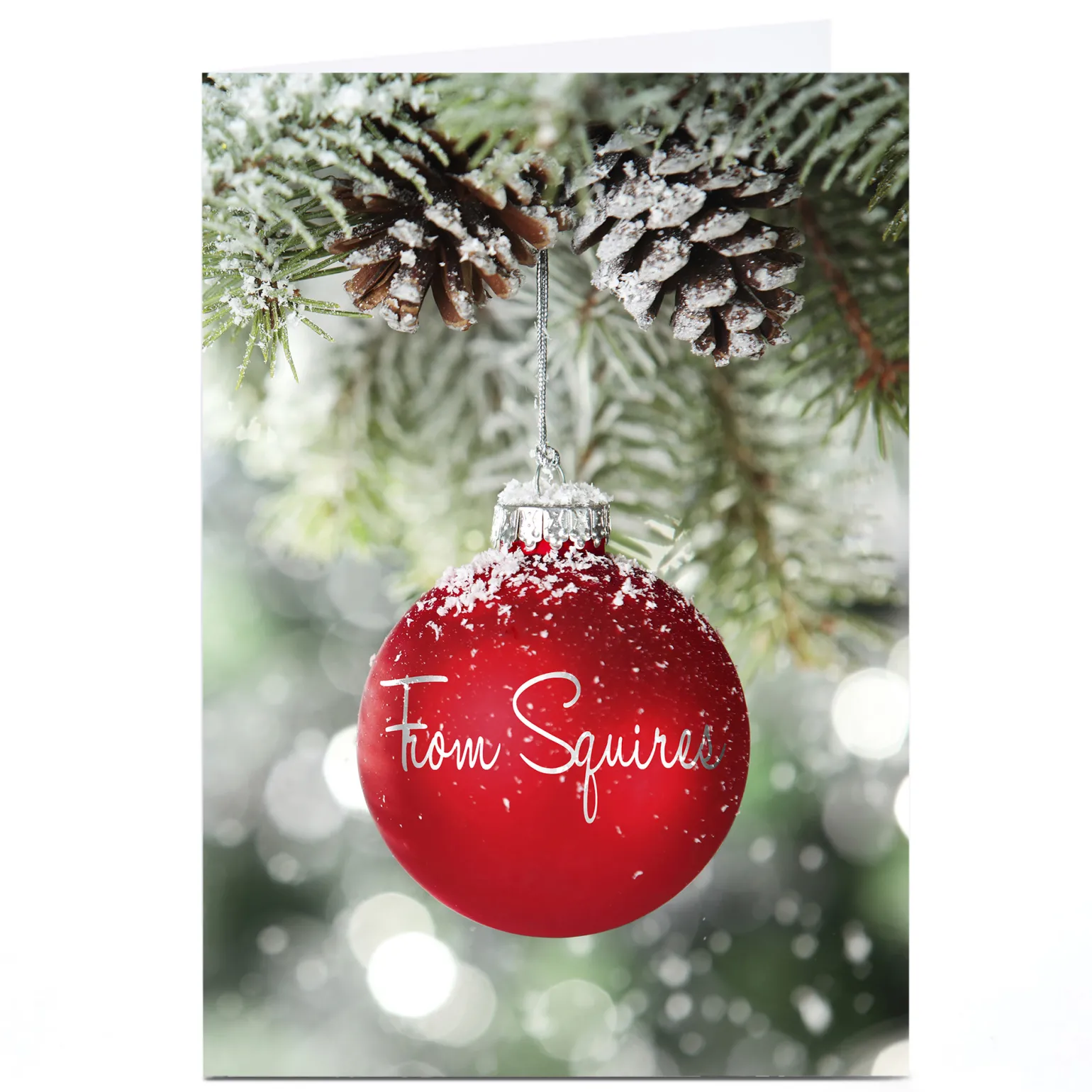 Personalised Business Christmas Card – Red Snowy Bauble
