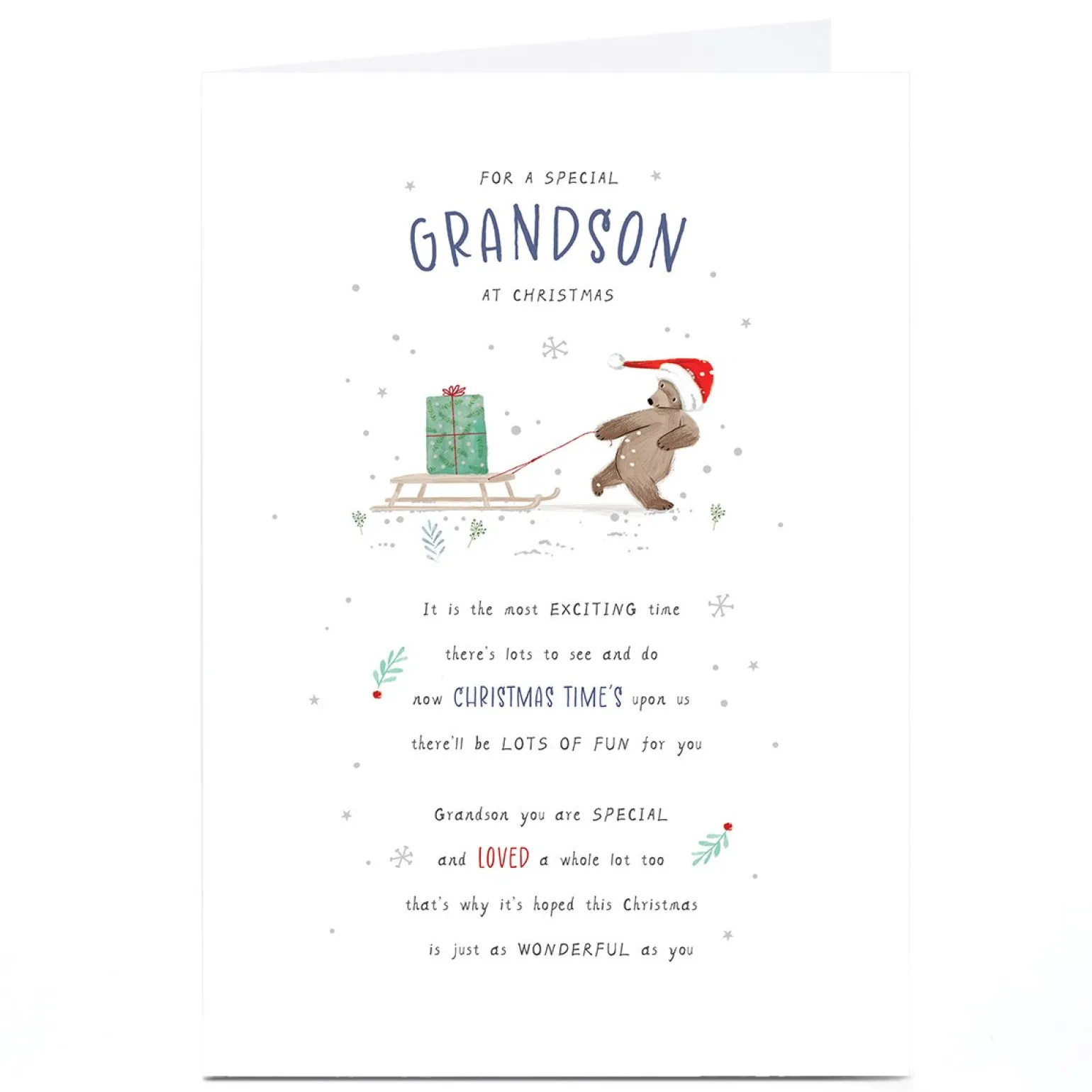 Personalised Christmas Card – Bear Pulling Sledge, Grandson