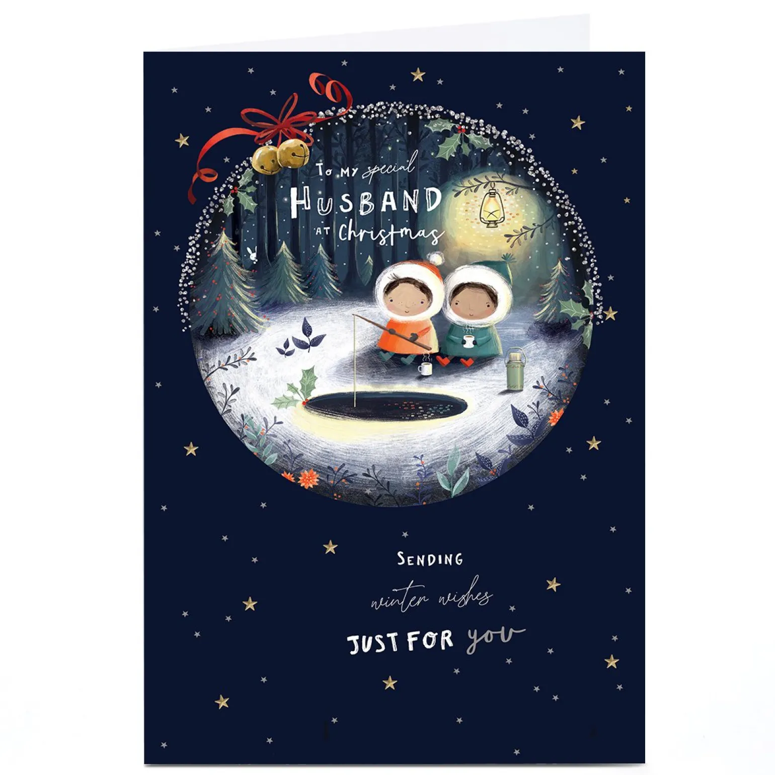 Personalised Christmas Card – Cute Couple Ice Fishing, Husband