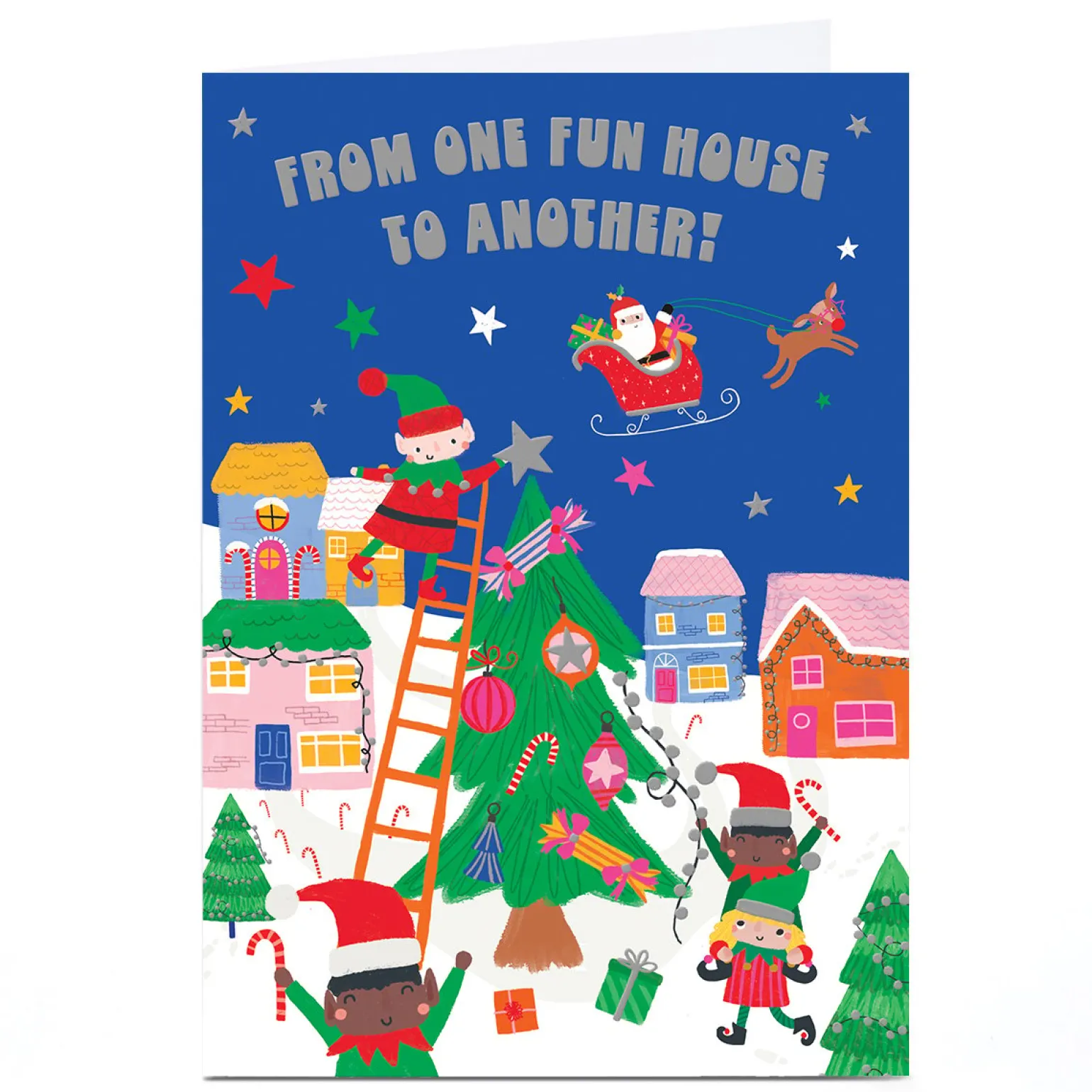 Personalised Christmas Card – Elves Decorating Tree, From Our House to Yours