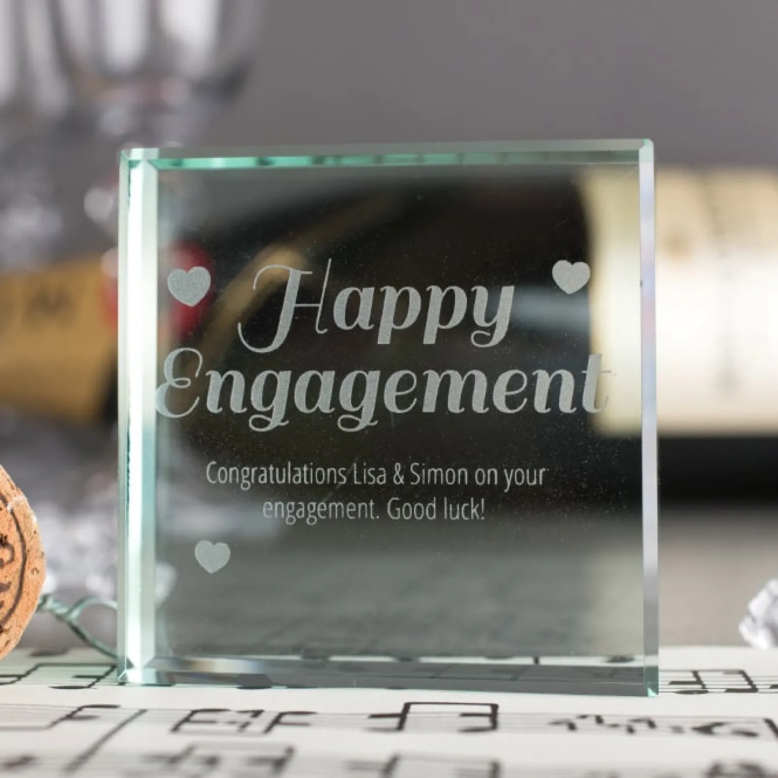 Personalised Engraved Glass Token – Happy Engagement