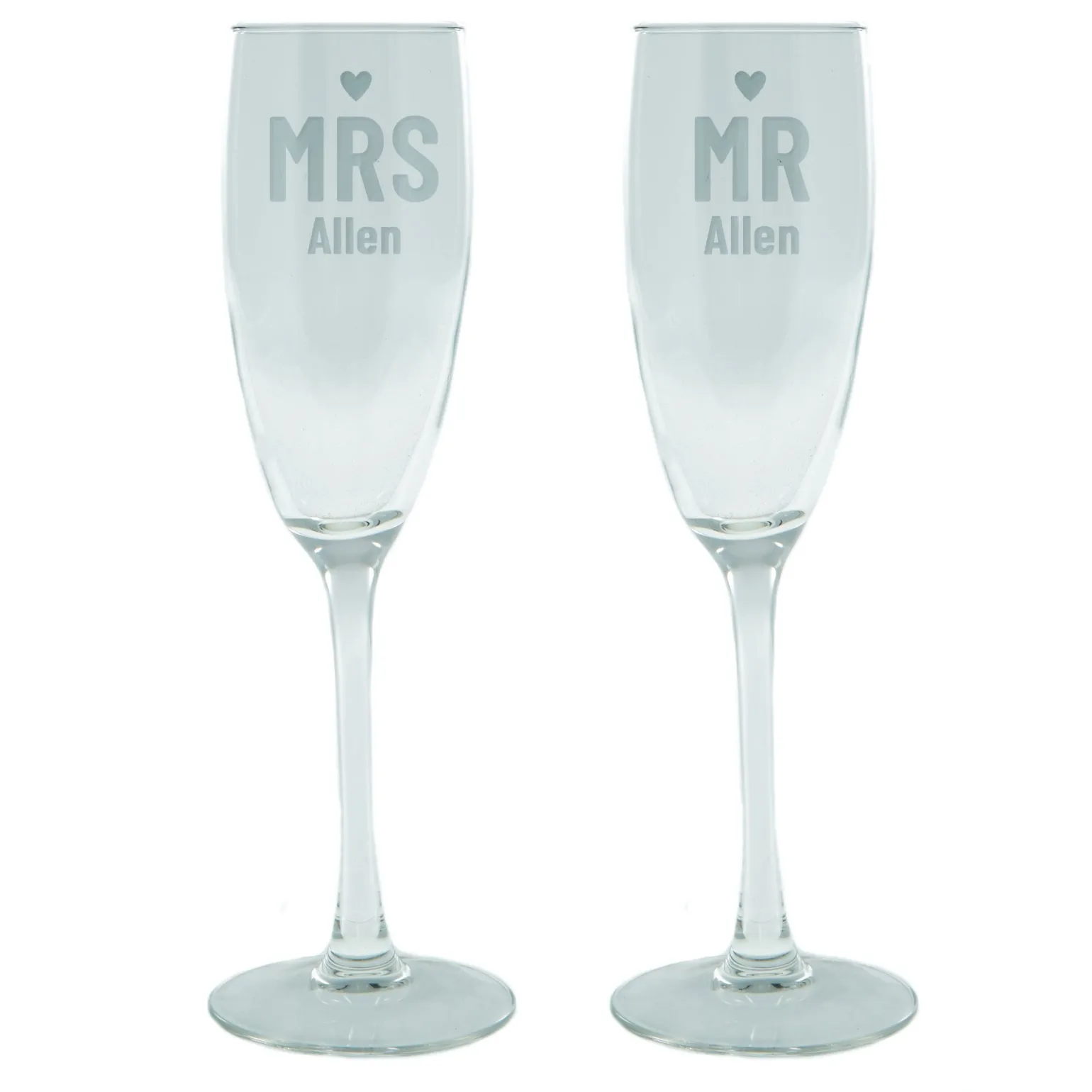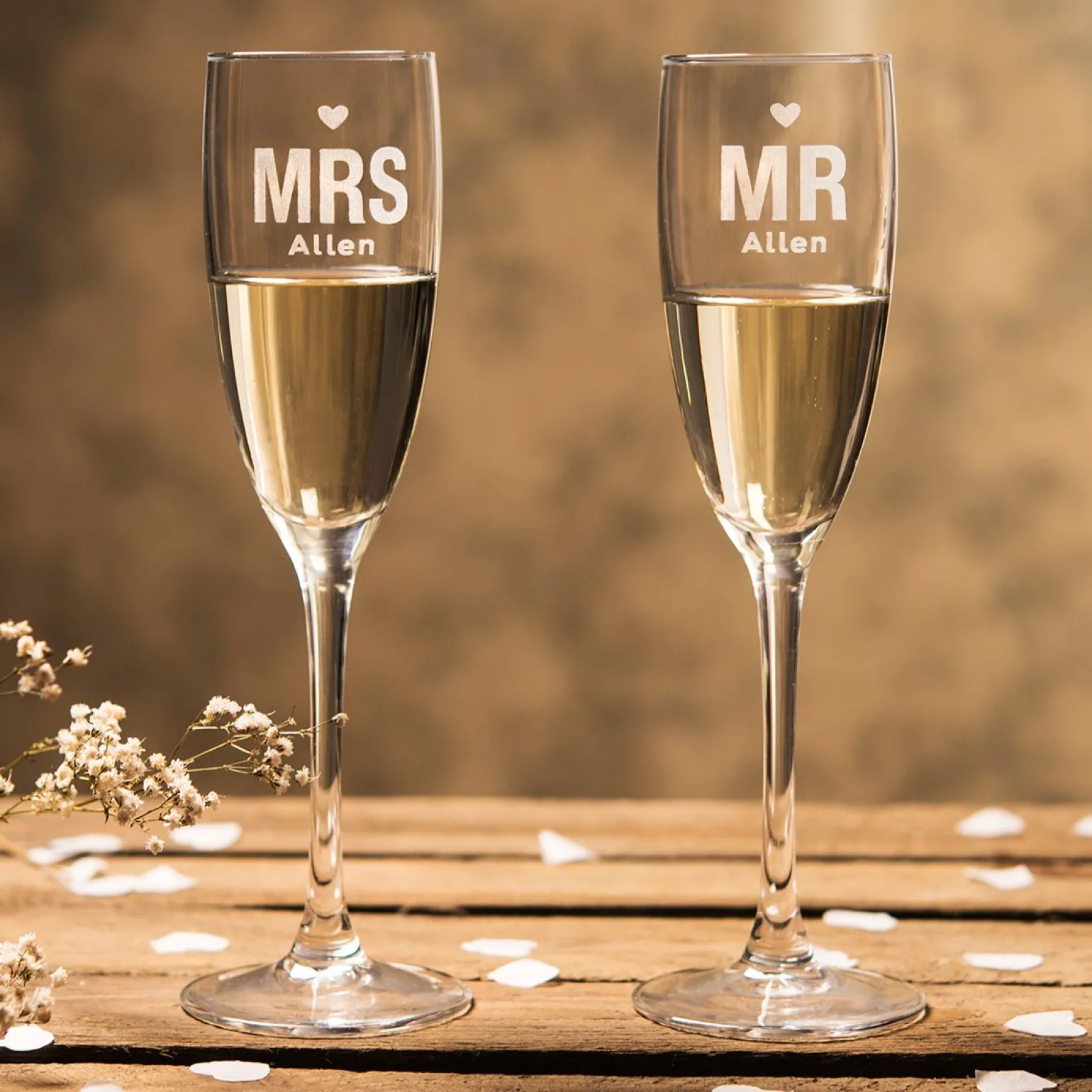 Personalised Engraved Mr & Mrs Champagne Flutes