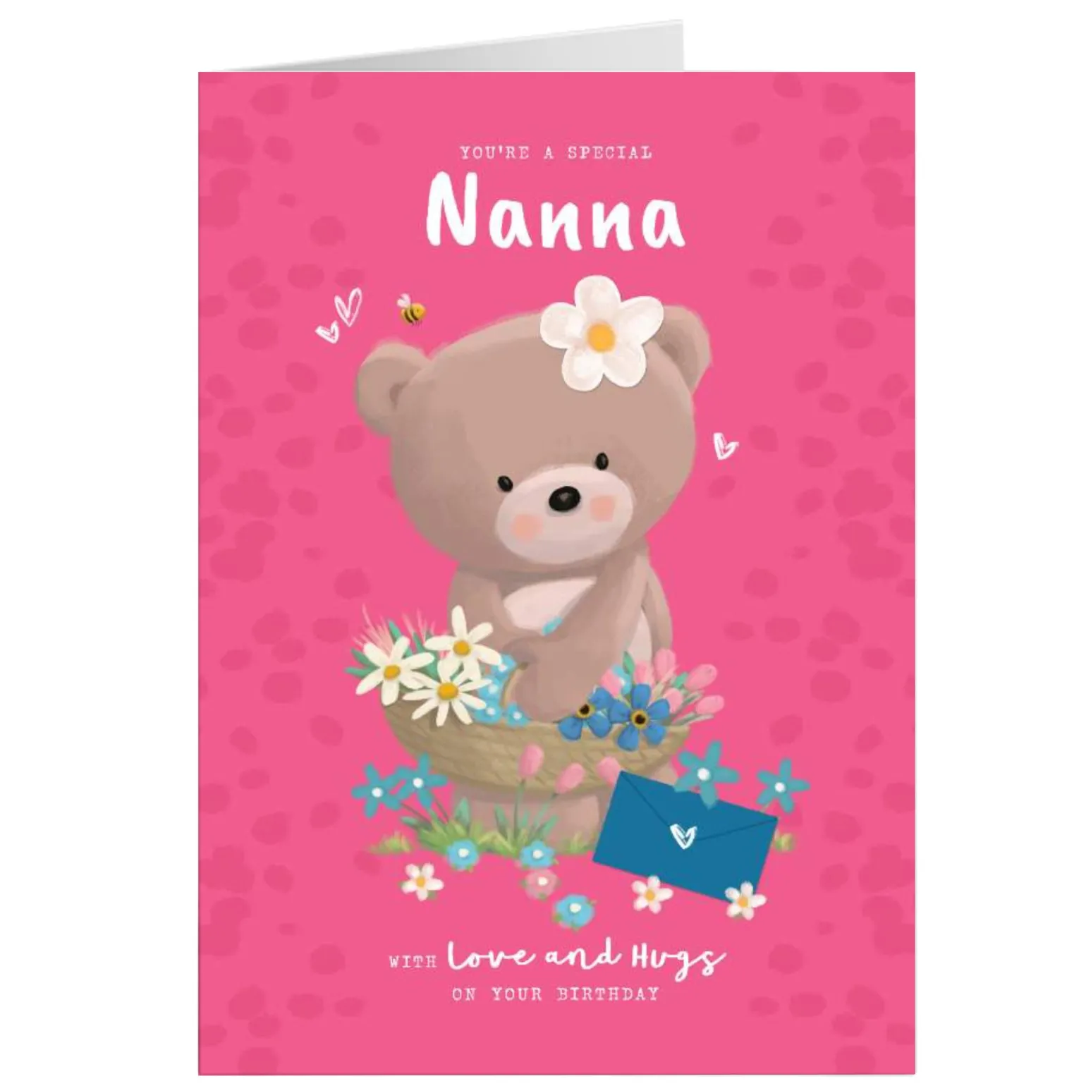 Personalised Hugs Birthday Card – Hugs With Flower Basket, Nanna