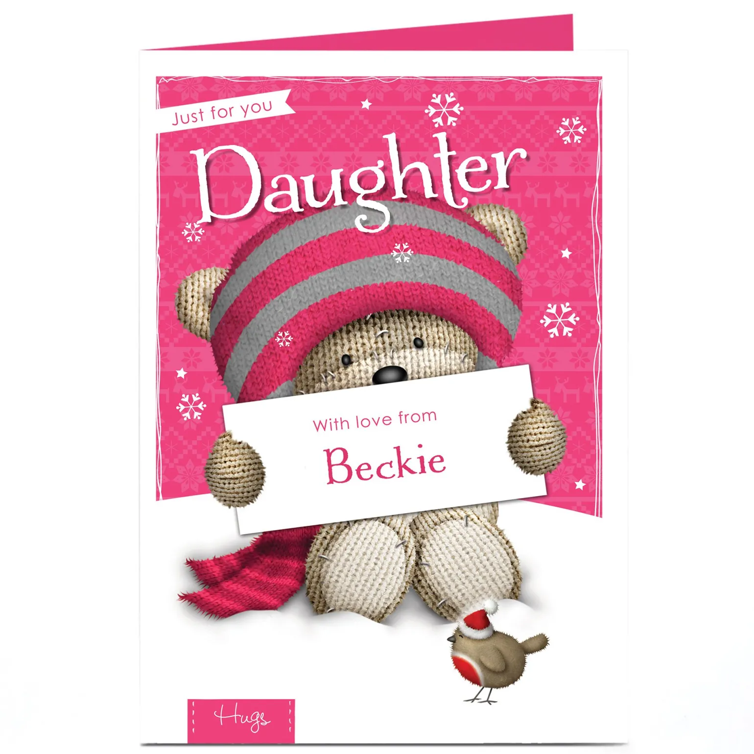 Personalised Hugs Christmas Card – Pink Bear – Daughter