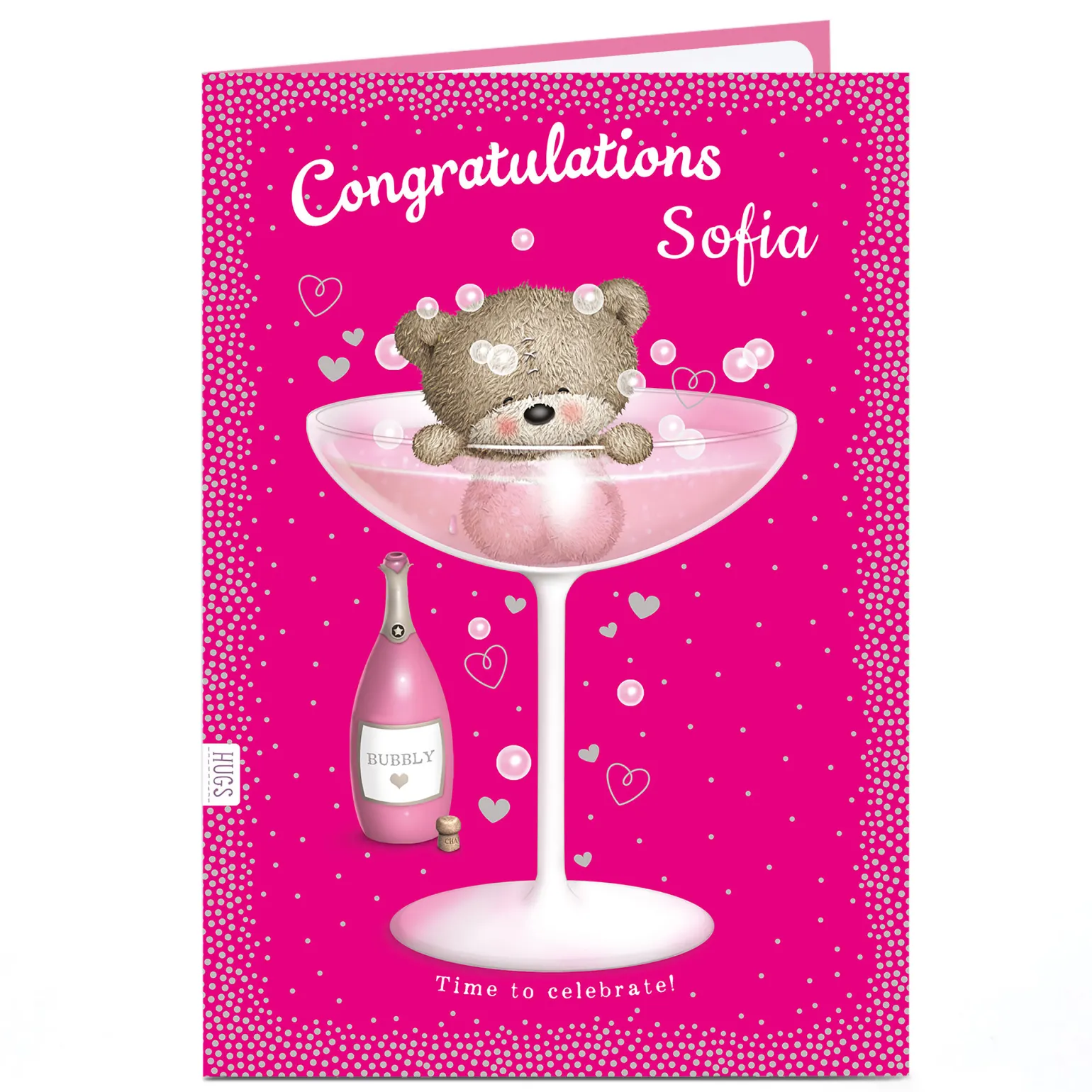 Personalised Hugs Congratulations Card – Bear In Cocktail Glass
