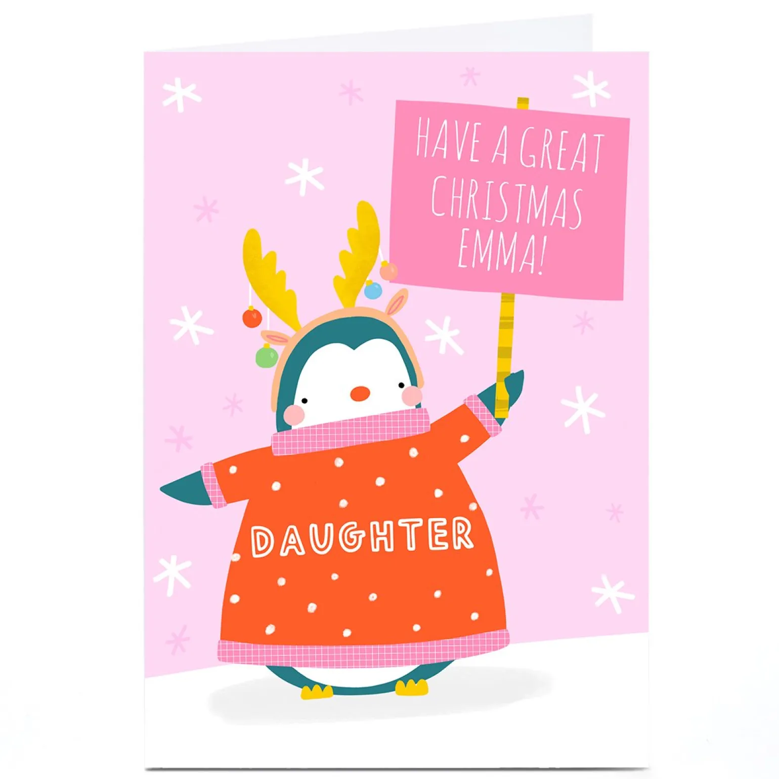 Personalised Jess Moorhouse Christmas Card – Penguin Daughter