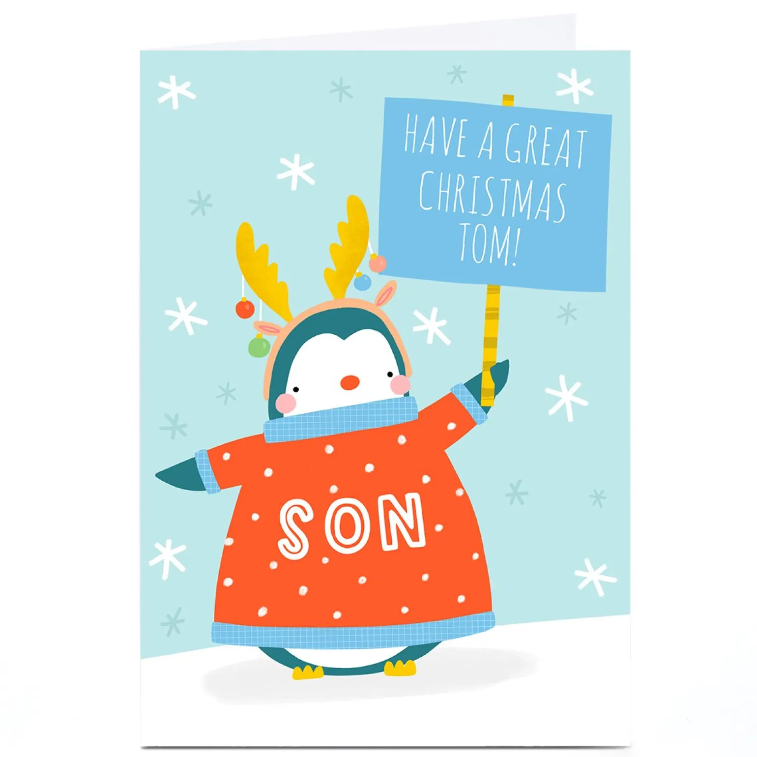 Personalised Jess Moorhouse Christmas Card – Penguin Son