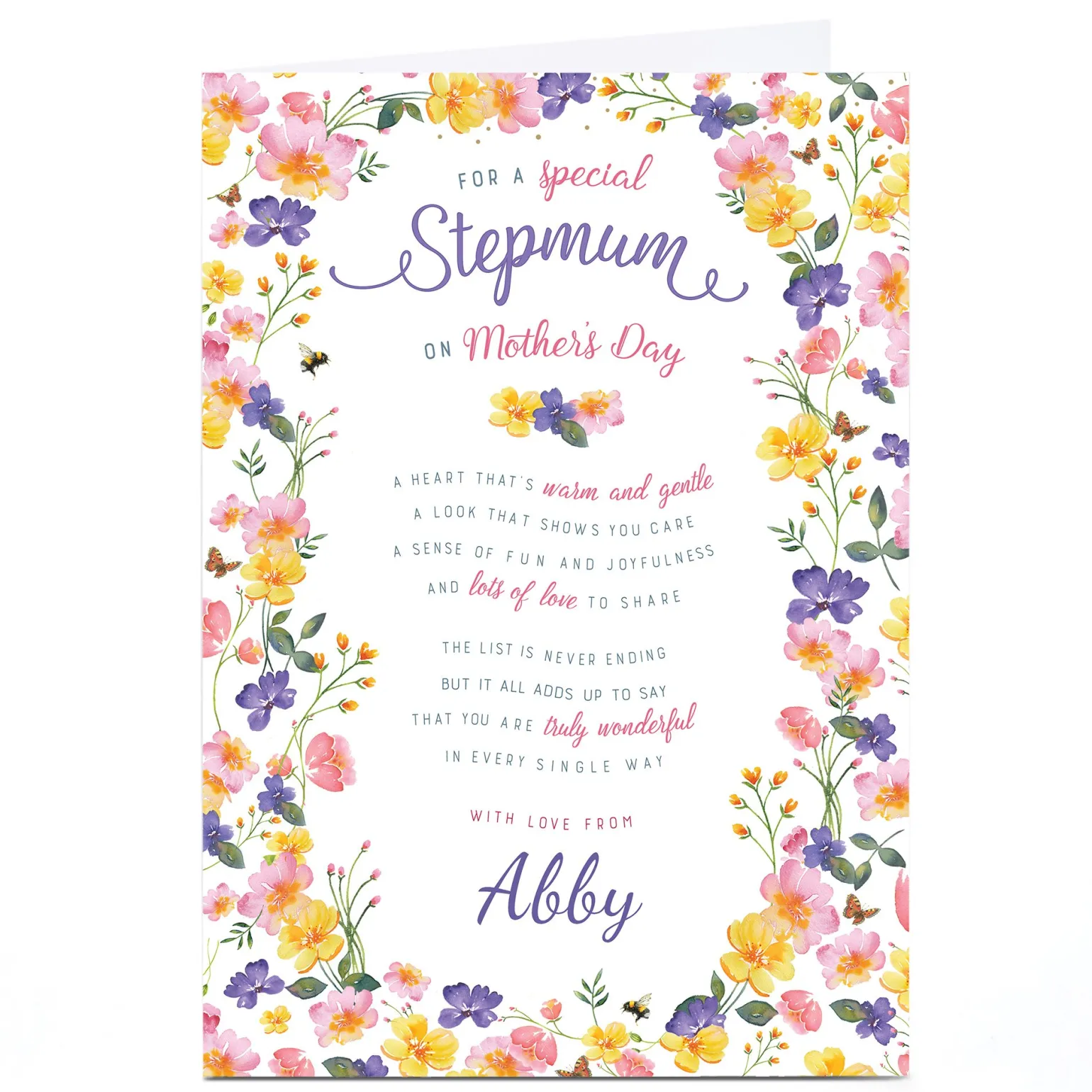 Personalised Mother’s Day Card – For A Special Step Mum, Flowers