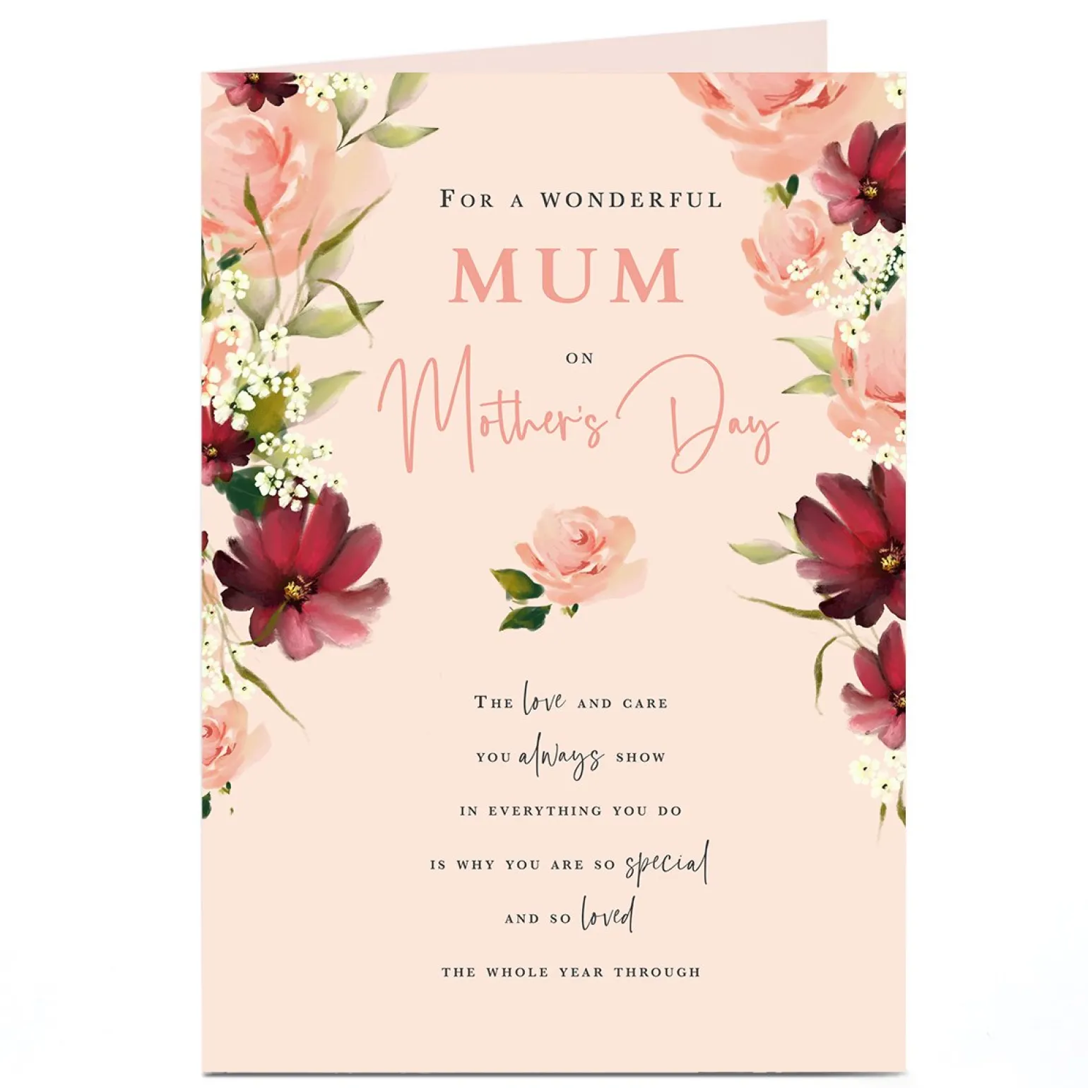 Personalised Mother’s Day Card – Red & Pink Flowers