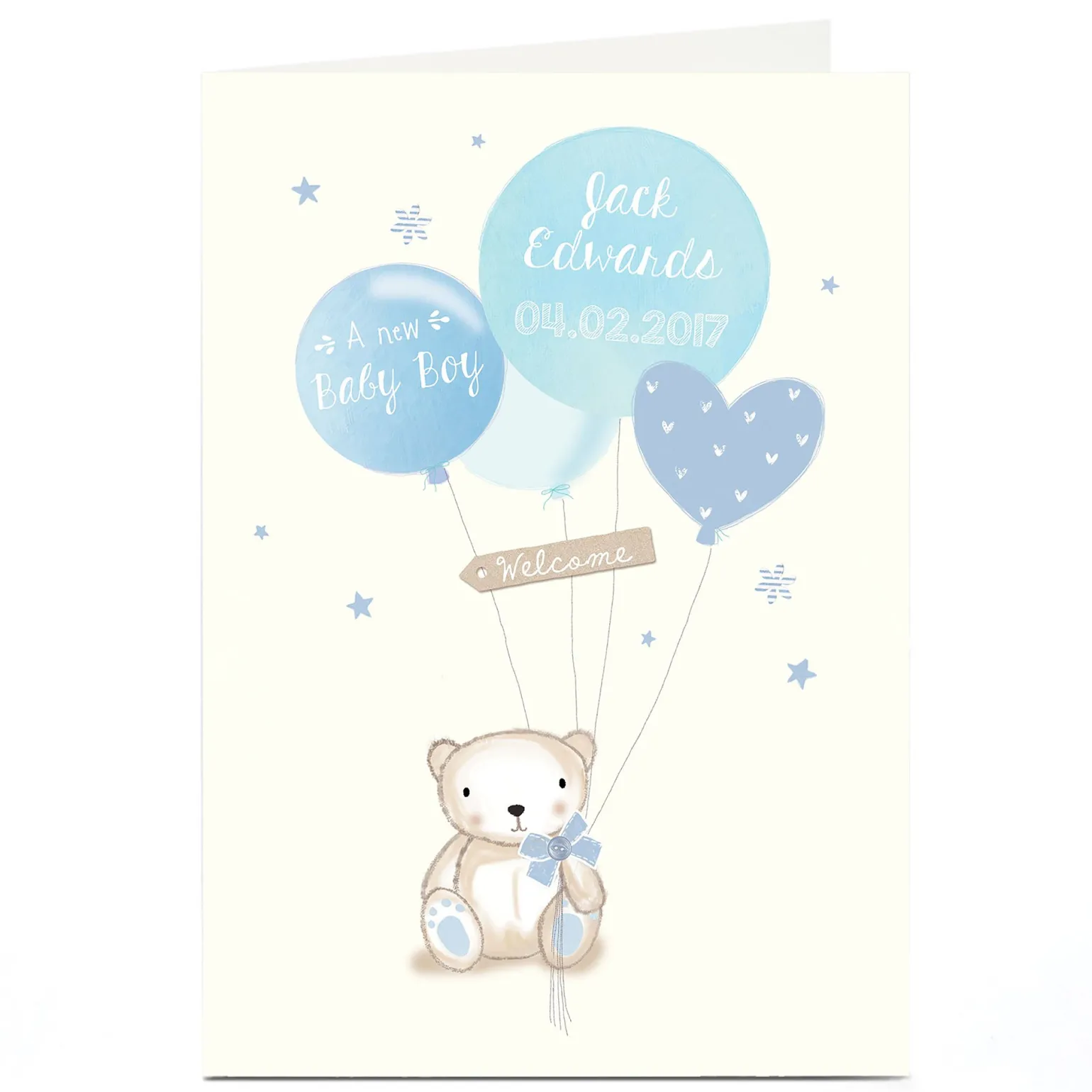 Personalised New Baby Card – Baby Boy Bear & Balloons