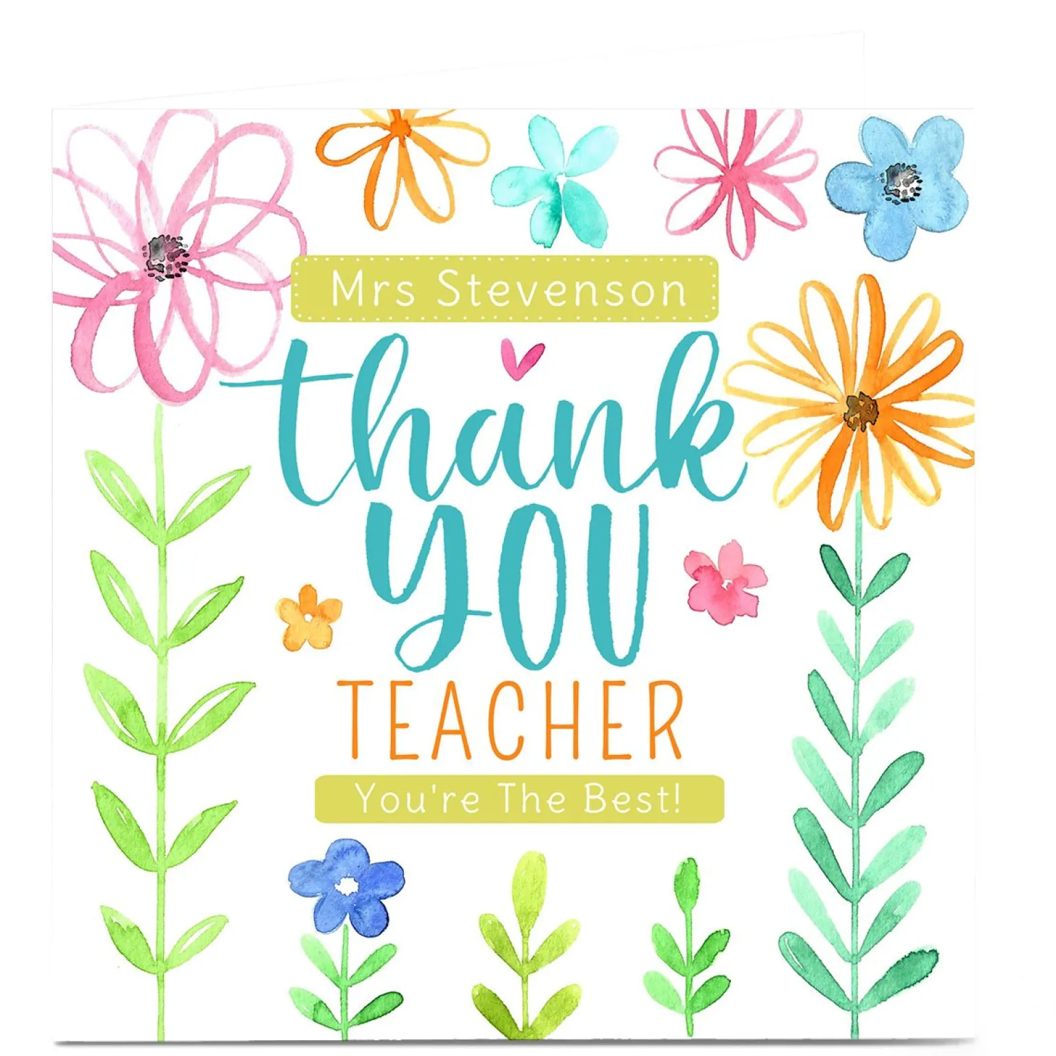 Be the first to review “Personalised Nikki Whiston Thank You Teacher Card – Flowers” Cancel reply