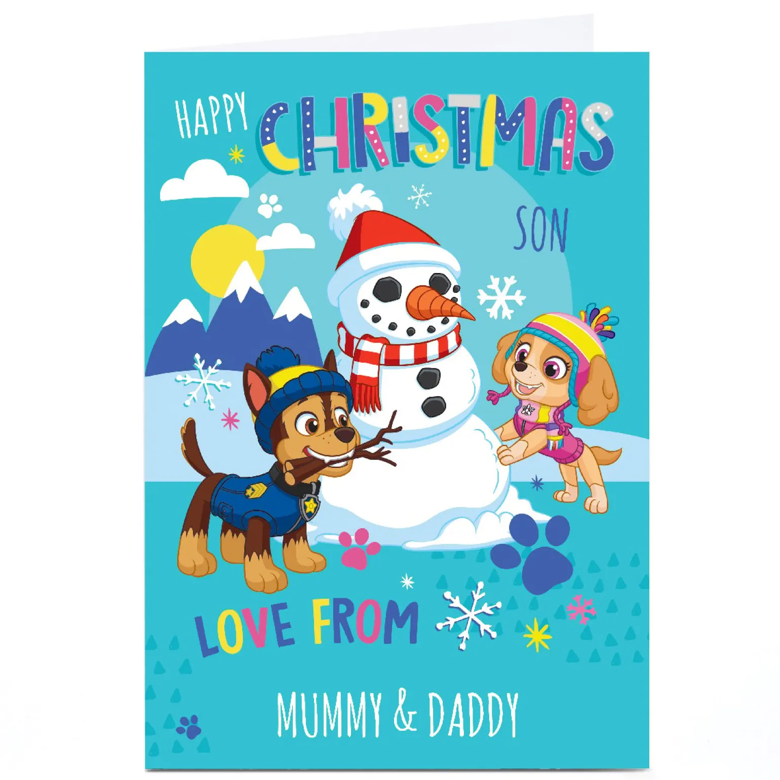 Personalised Paw Patrol Christmas Card – Building Snowman