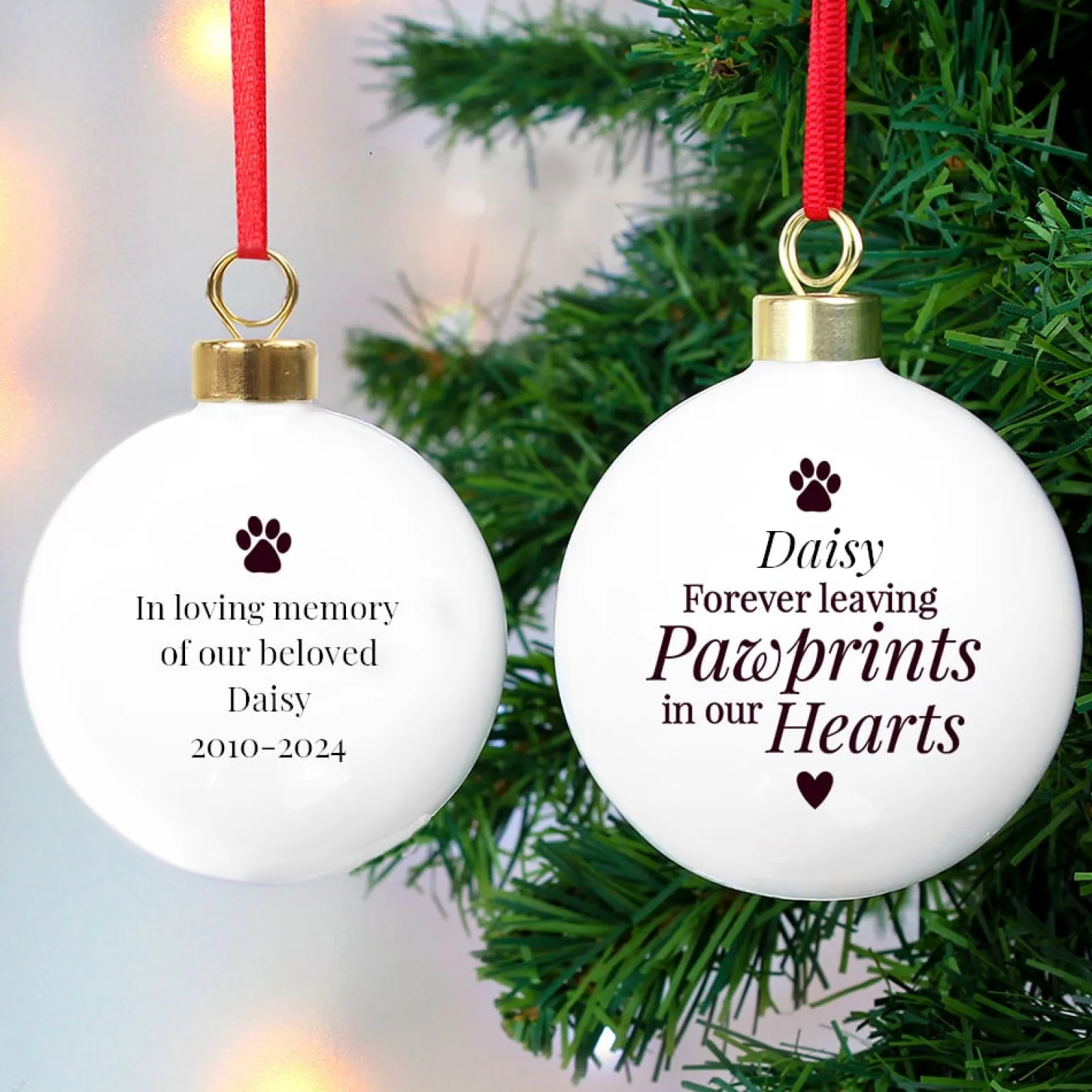 Personalised Pawprints Memorial Bauble