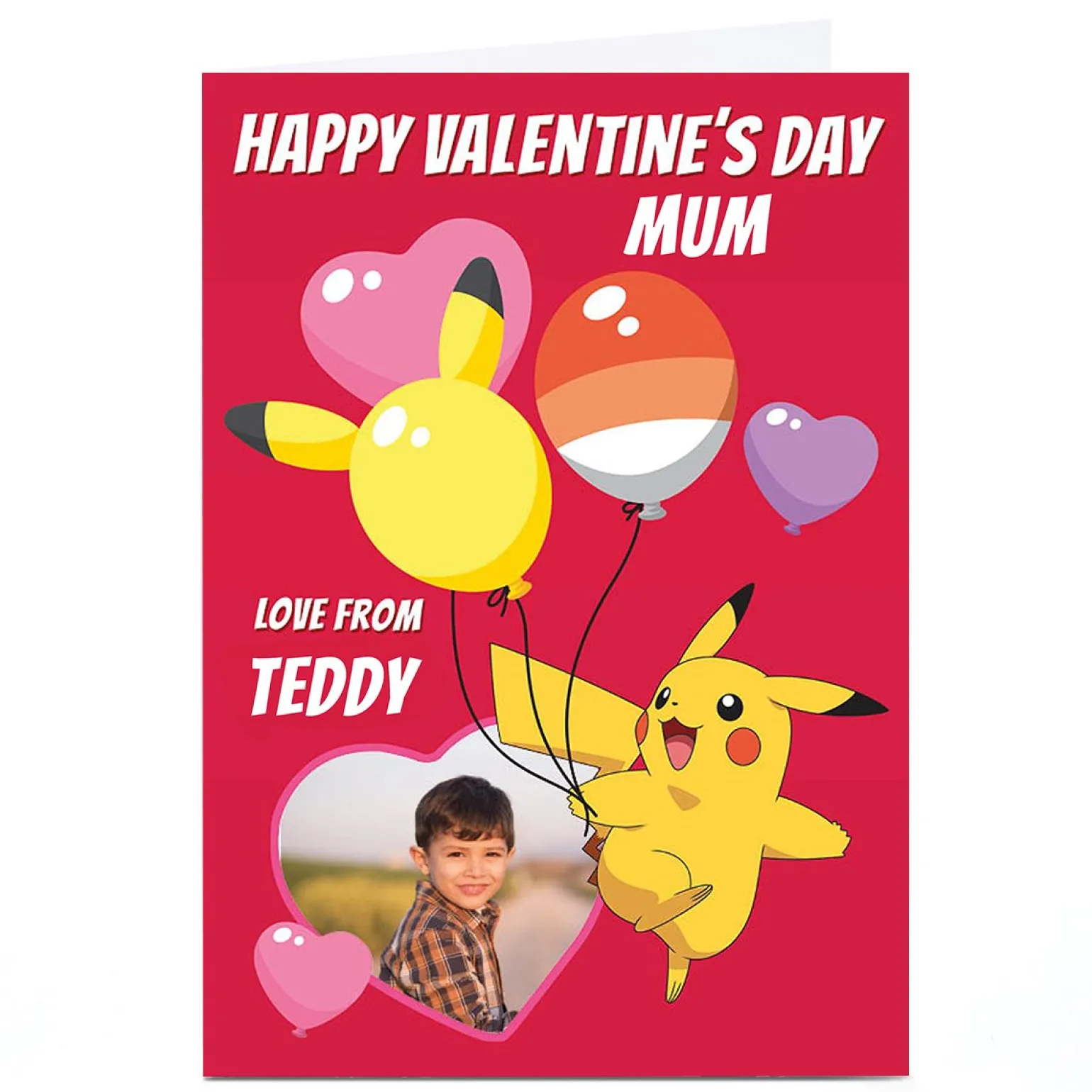 Personalised Pokemon Valentine’s Day Card – Pikachu Balloons