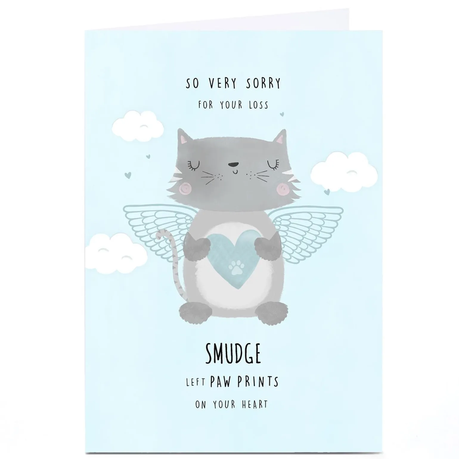 Personalised Sympathy Card – Cat Pawprints On Your Heart