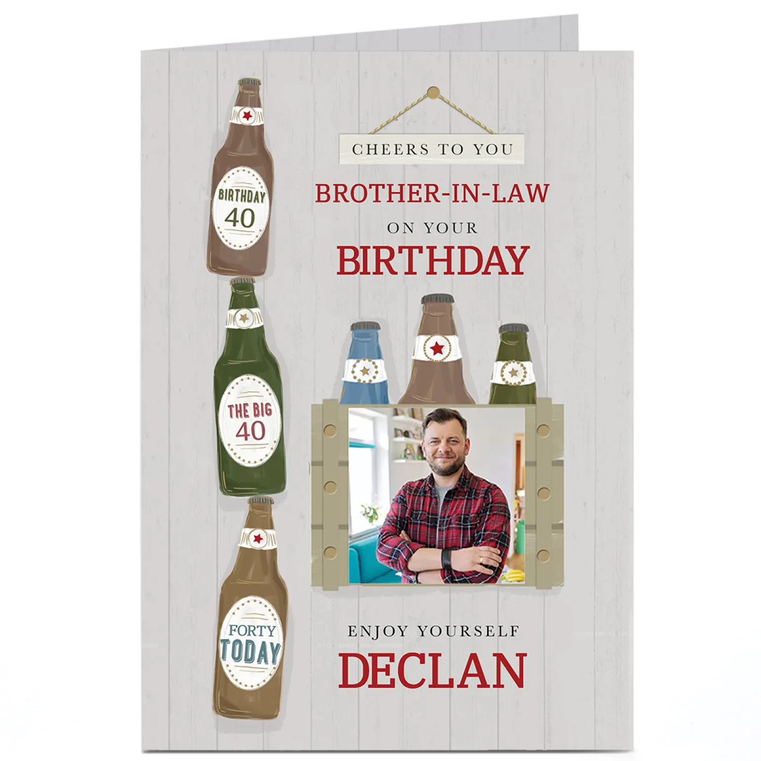 Photo Birthday Card – Brother-in-Law & Beers, Editable Age