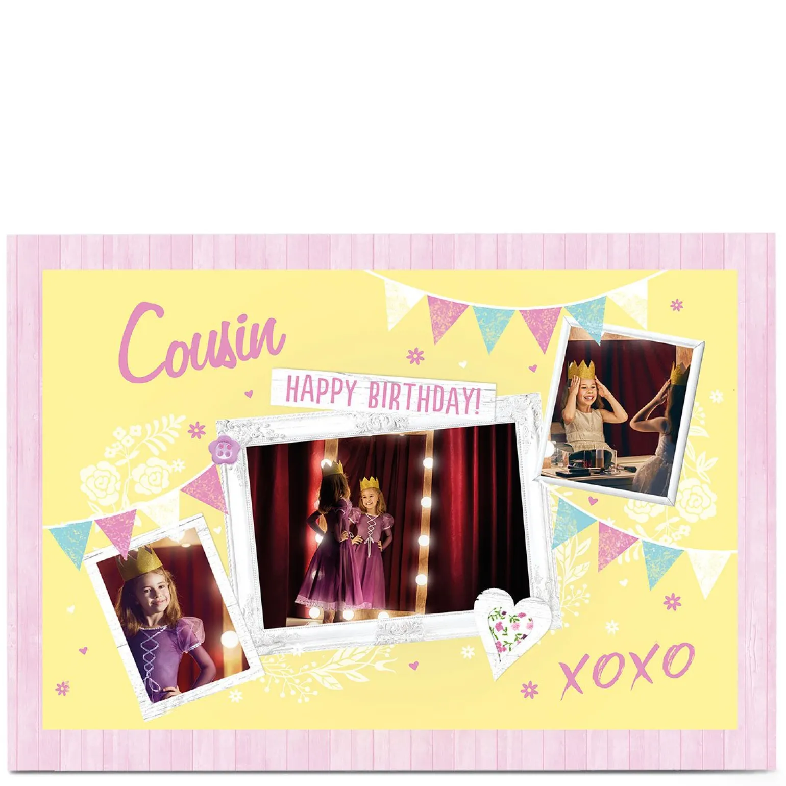 Photo Birthday Card – Cousin, Yellow & Pink Bunting