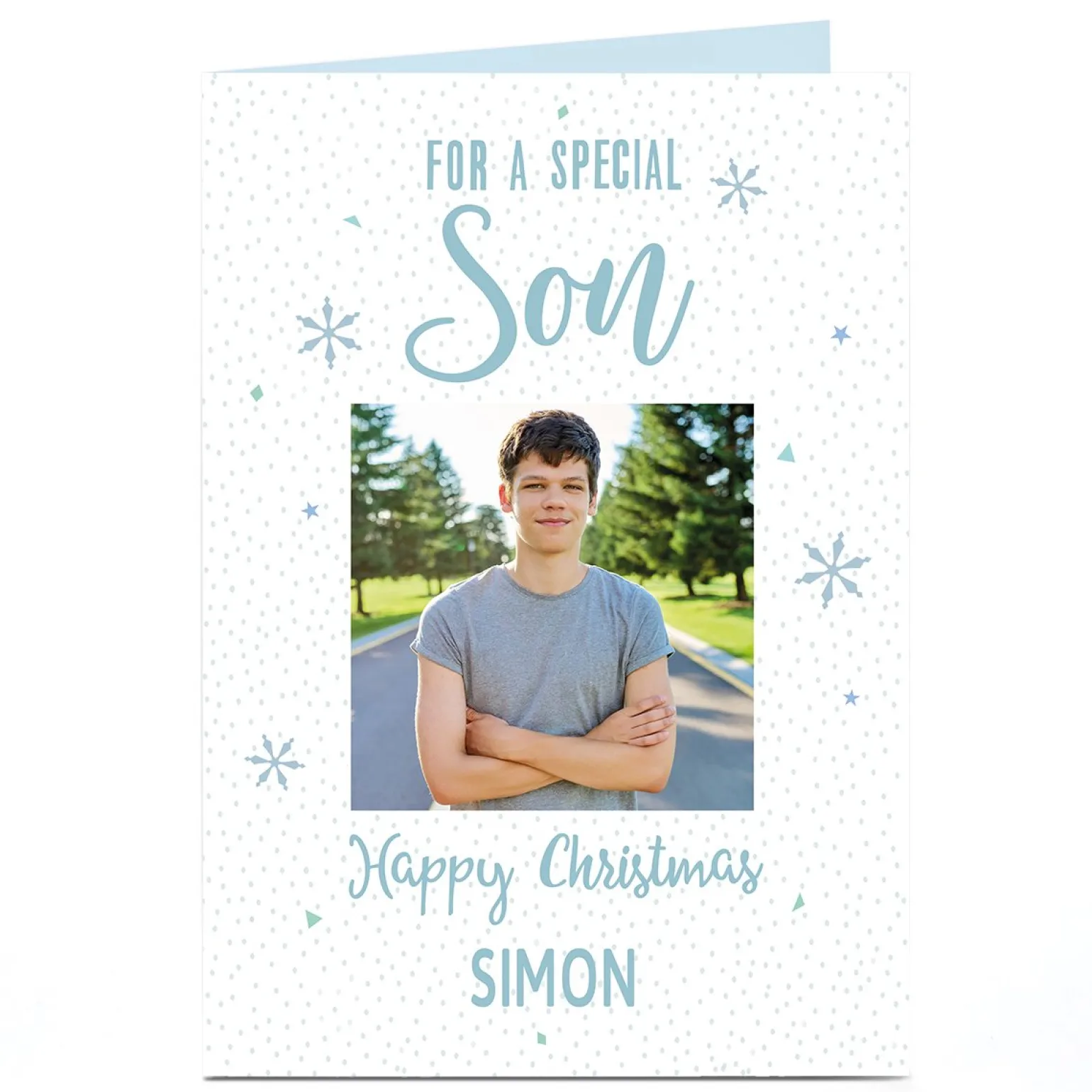 Be the first to review “Photo Christmas Card – Blue Snowflakes, Son” Cancel reply