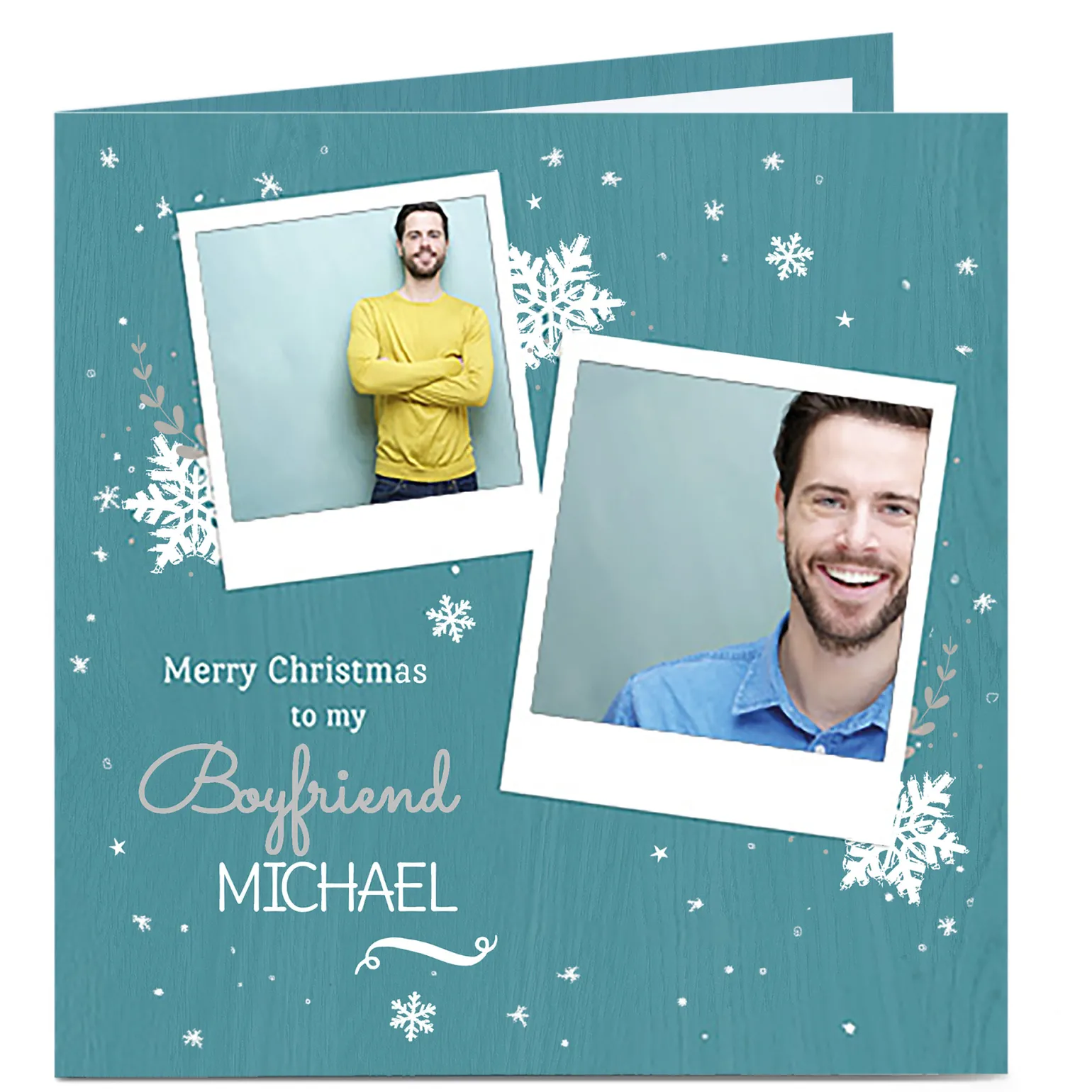 Photo Christmas Card – Boyfriend Blue Snowflakes Photo