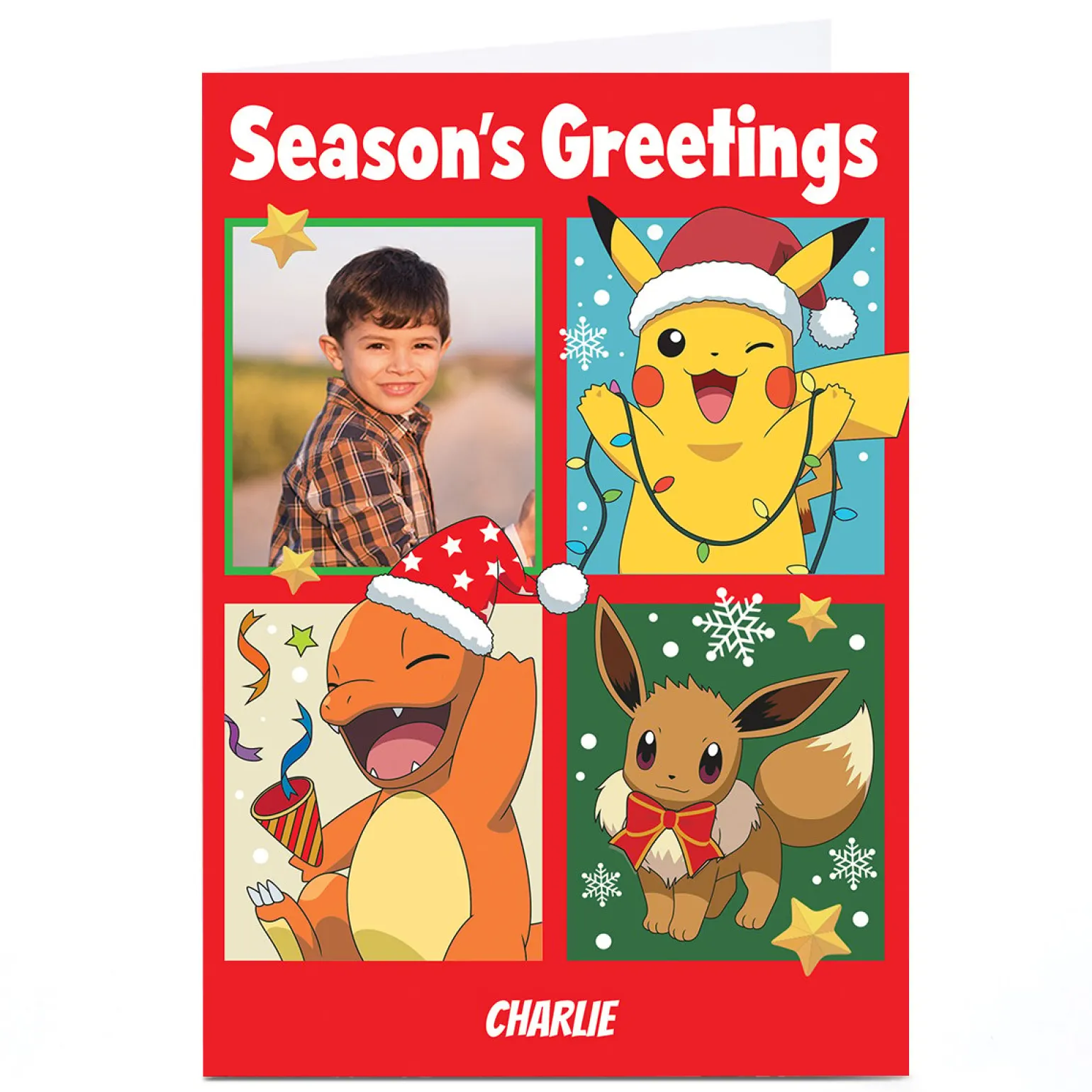 Photo Pokemon Christmas Card – Pikachu, Eevee & Charmander