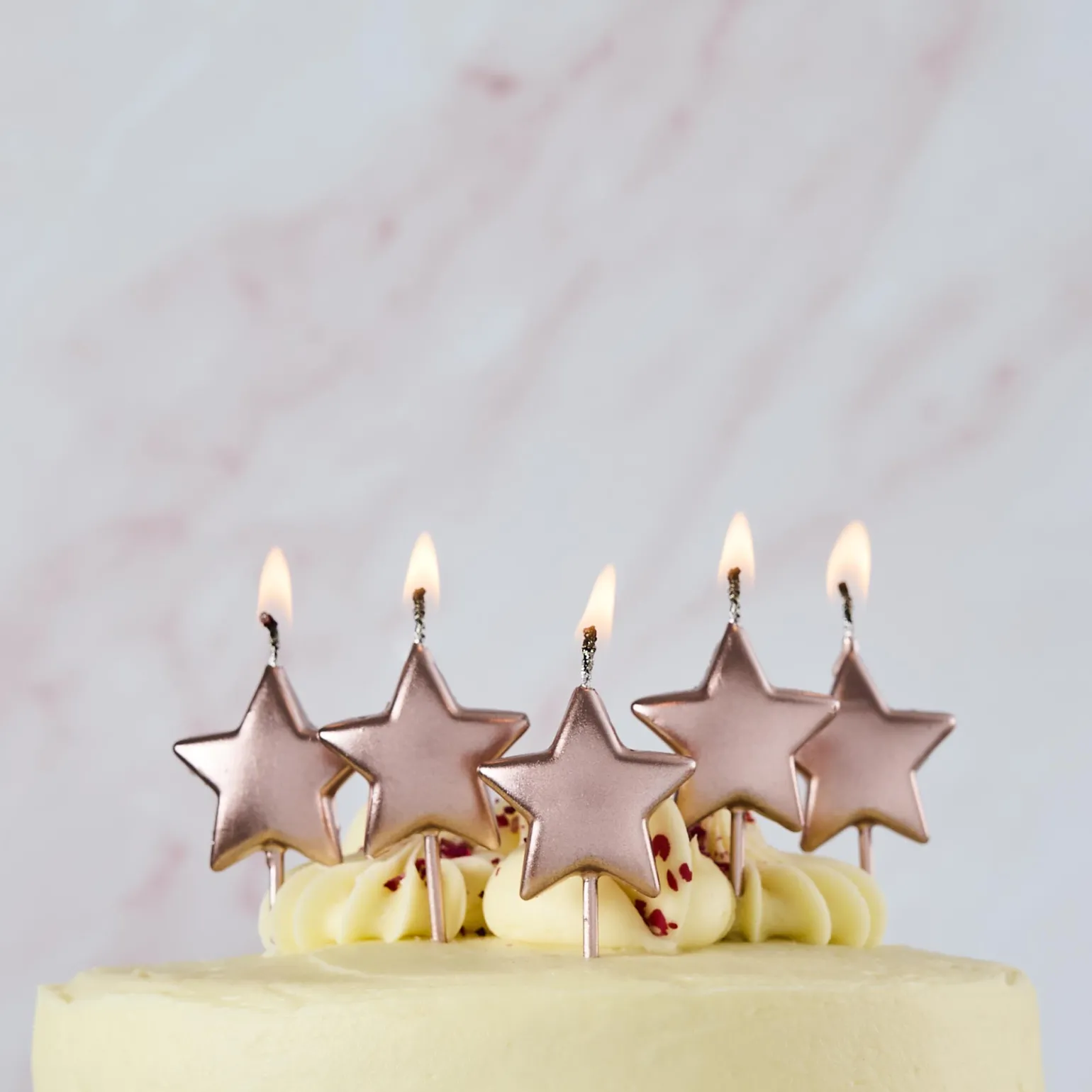 Rose Gold Metallic Star Cake Candles – Pack of 5