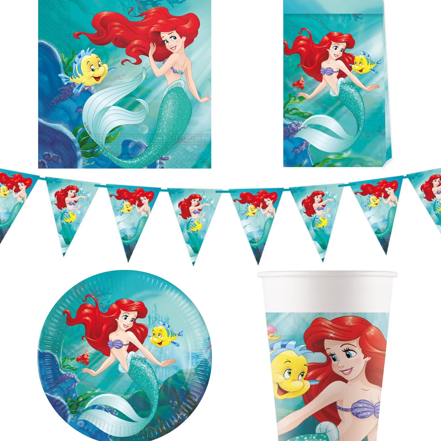 The Little Mermaid Party Tableware & Decorations Bundle – 16 Guests